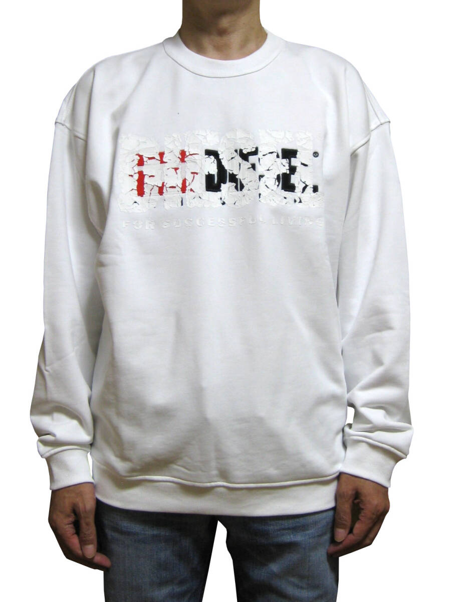 新品 直輸入 DIESEL ディーゼル 2重 レイヤードロゴ クラック&パフプリント S-NABEL-M ホワイト Sサイズ A11778