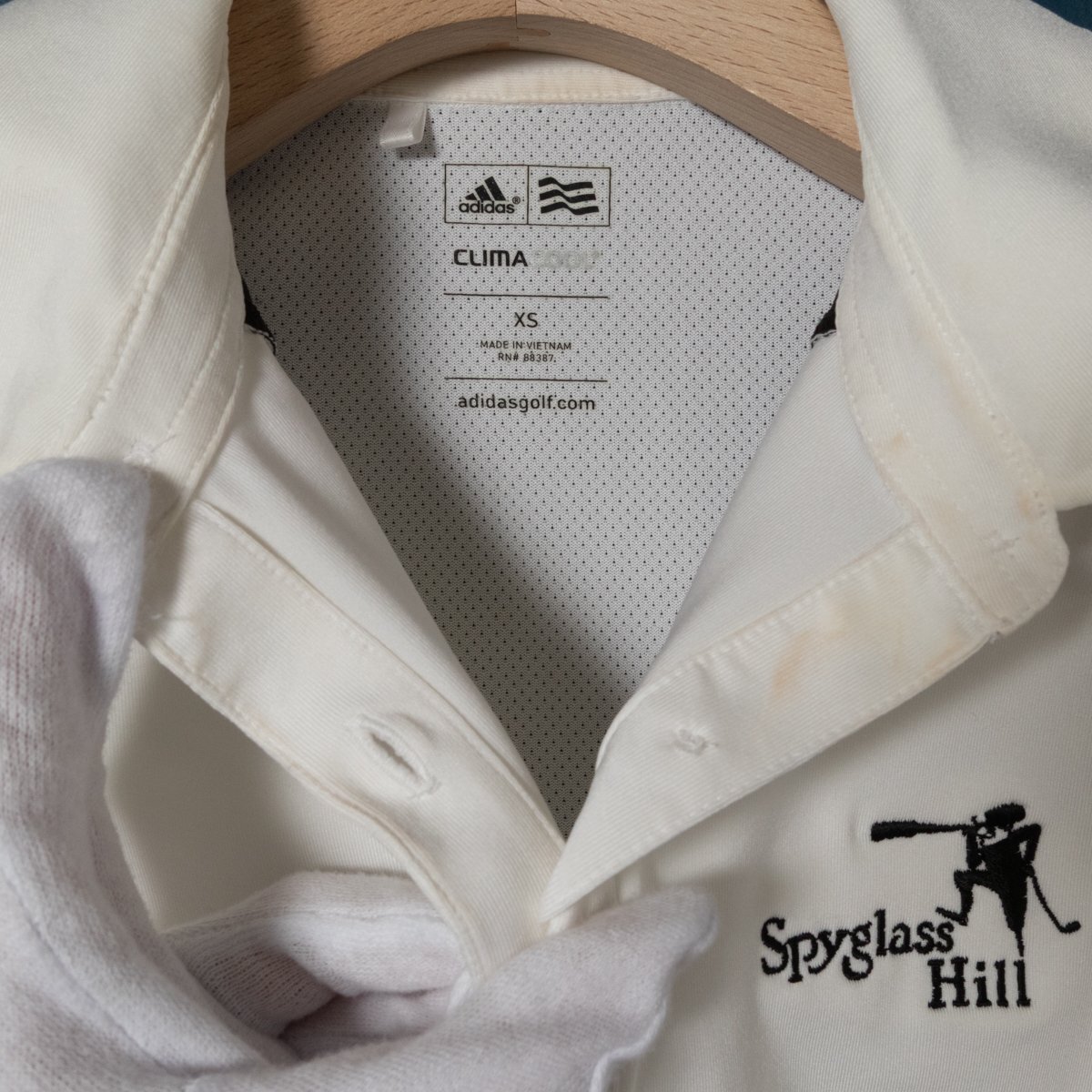 状態 | C 首周り内側、両襟、第3ボタン付近、右胸、前ウエスト中央に汚れがございます。 |