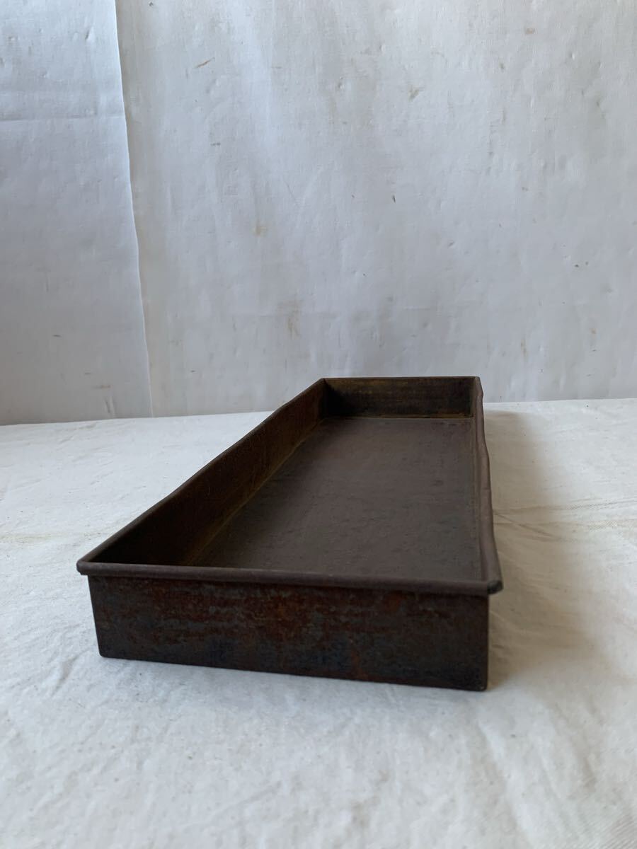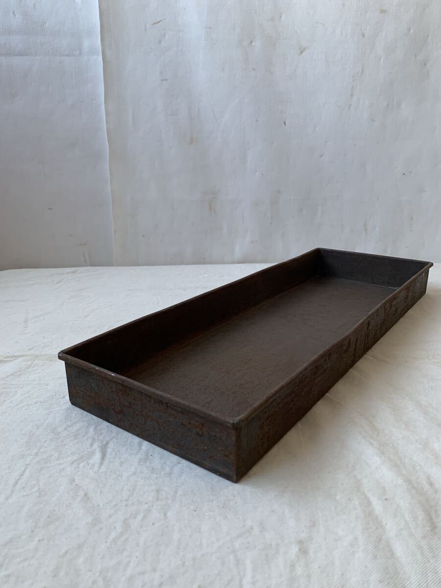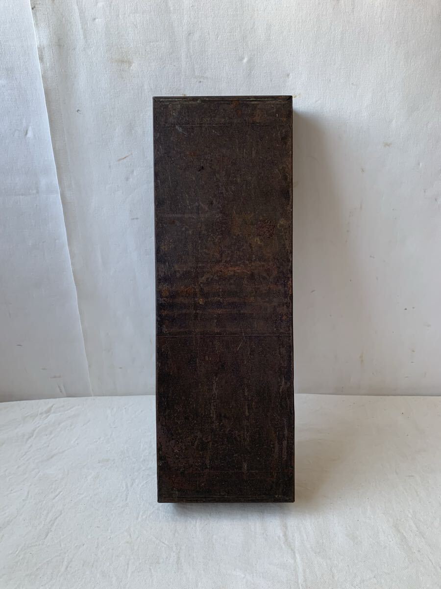 経年の雰囲気が素敵なブリキケースです。小物などの収納ケースとして、お部屋のインテリアやお店のディスプレイ、イベント出店時の什器などに使って頂くと素敵だと思います。