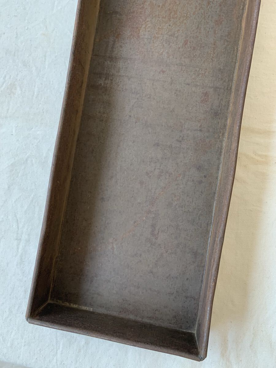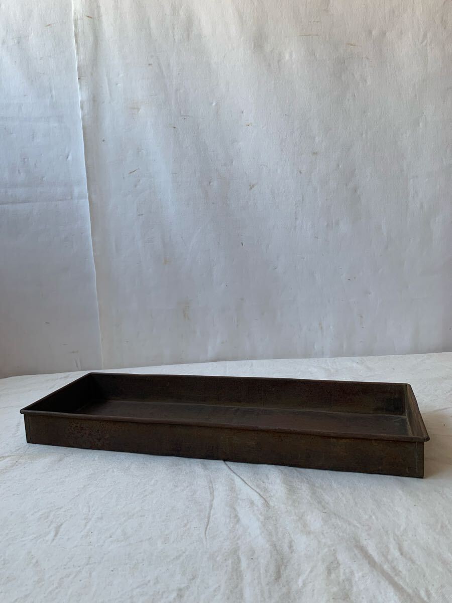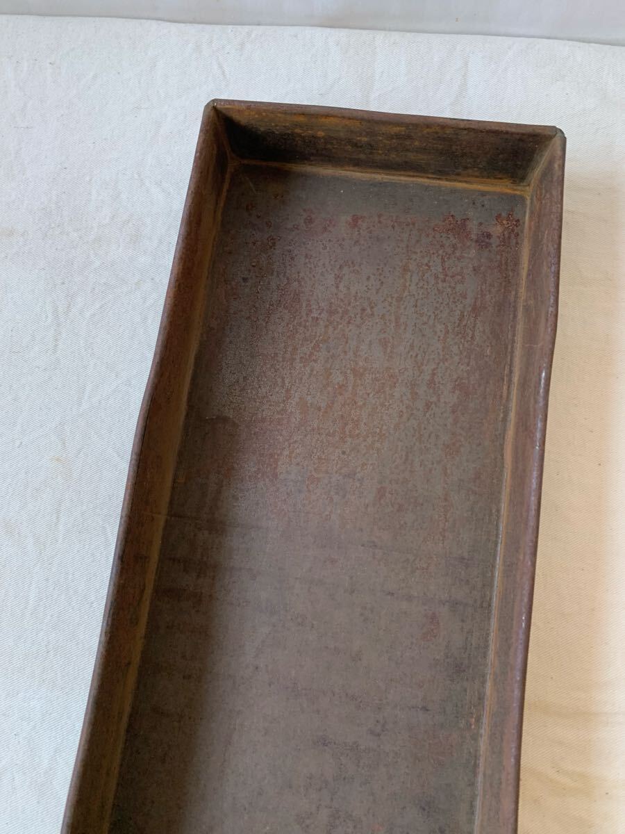 経年の雰囲気が素敵なブリキケースです。小物などの収納ケースとして、お部屋のインテリアやお店のディスプレイ、イベント出店時の什器などに使って頂くと素敵だと思います。