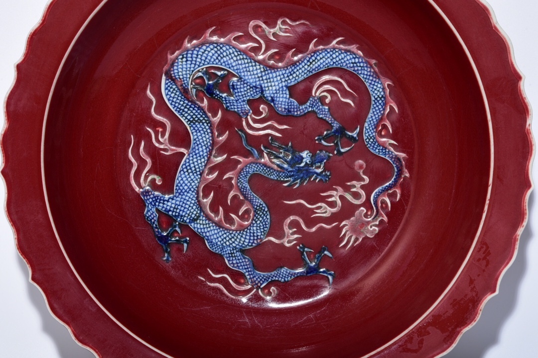 唐物 元 祭紅釉 青花 龍紋盤 陶芸 古陶磁器 中国磁器 古美術品 時代物 中国古玩 骨董品 D67