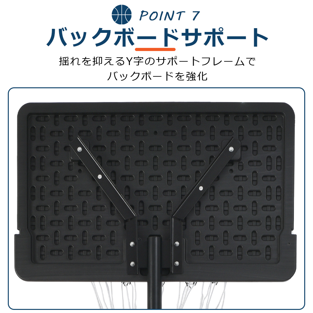 • 【バックボードサポート】揺れを抑えるY字のサポートフレームでバックボードを強化します。