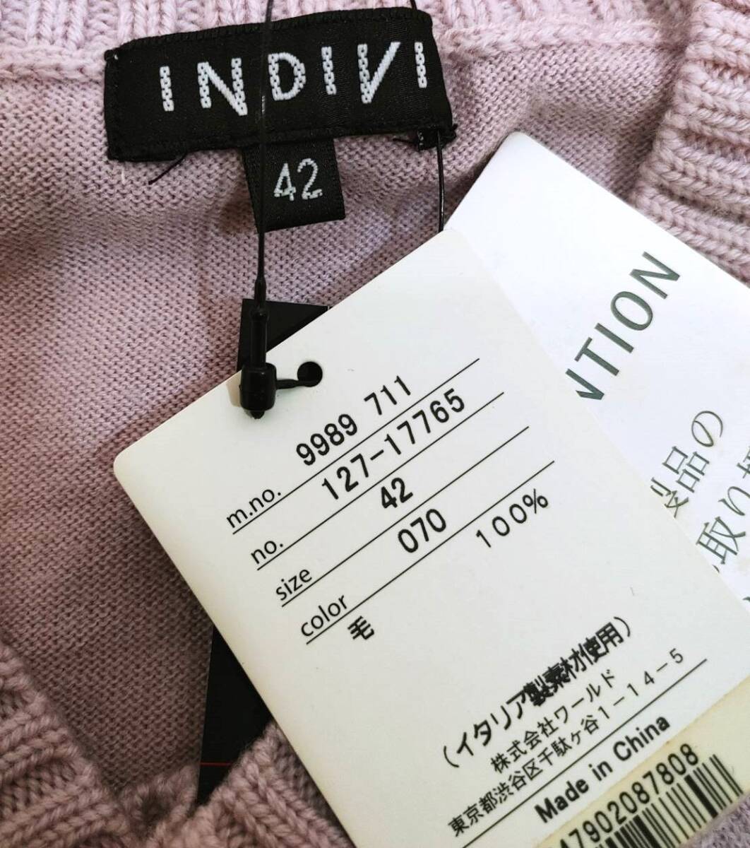 未使用タグ付きインディヴィINDIVIレディースニット42パープル