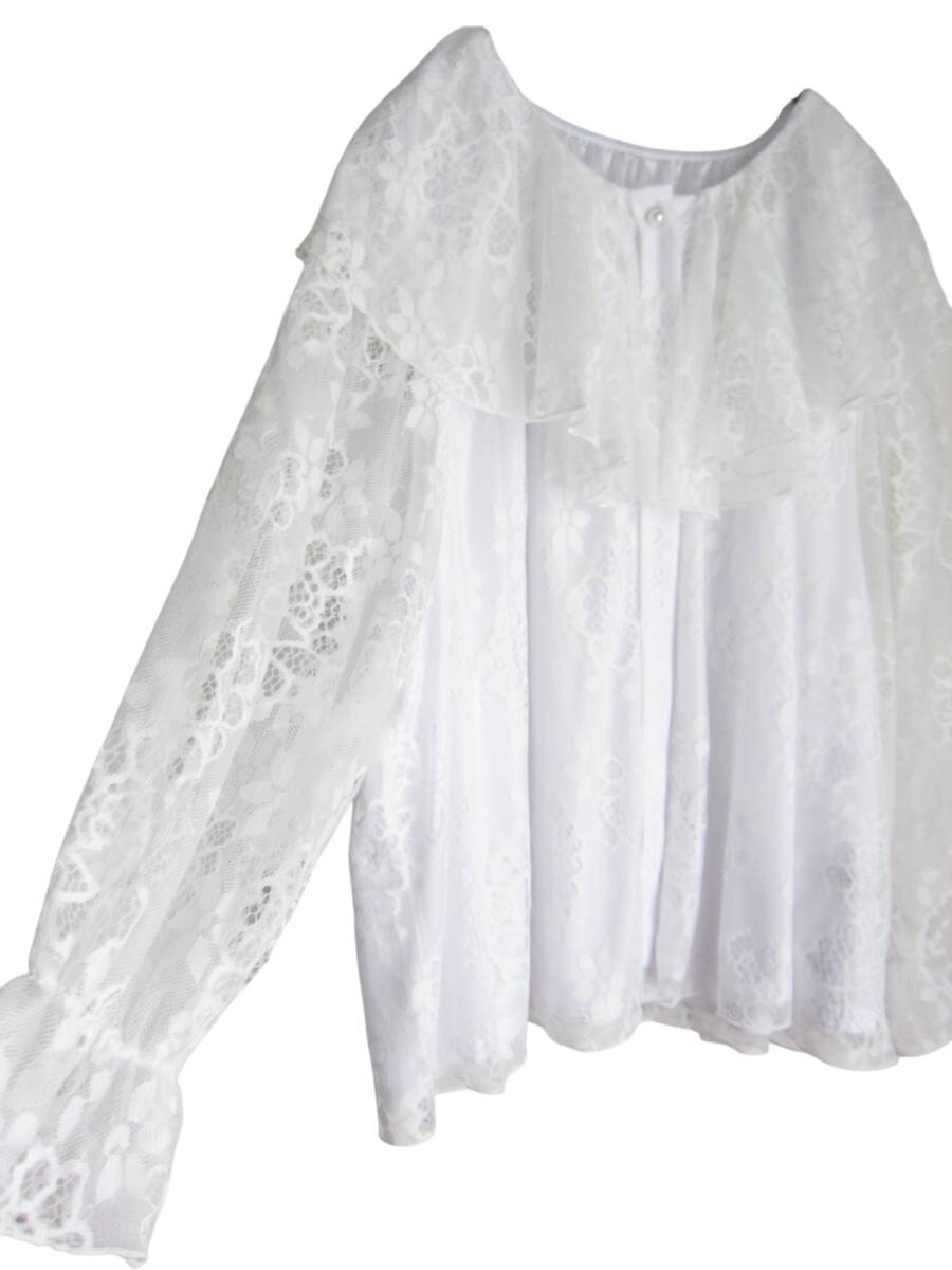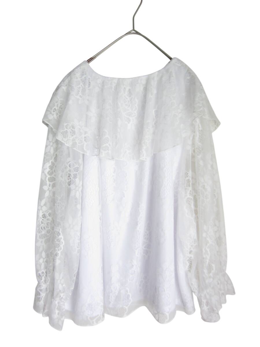 ★送料無料 H26 美品 【5L】 ~6L着用可 ホワイト レース 袖透け感 チュニック 7分袖 大きいサイズ ゆうパケットポスト