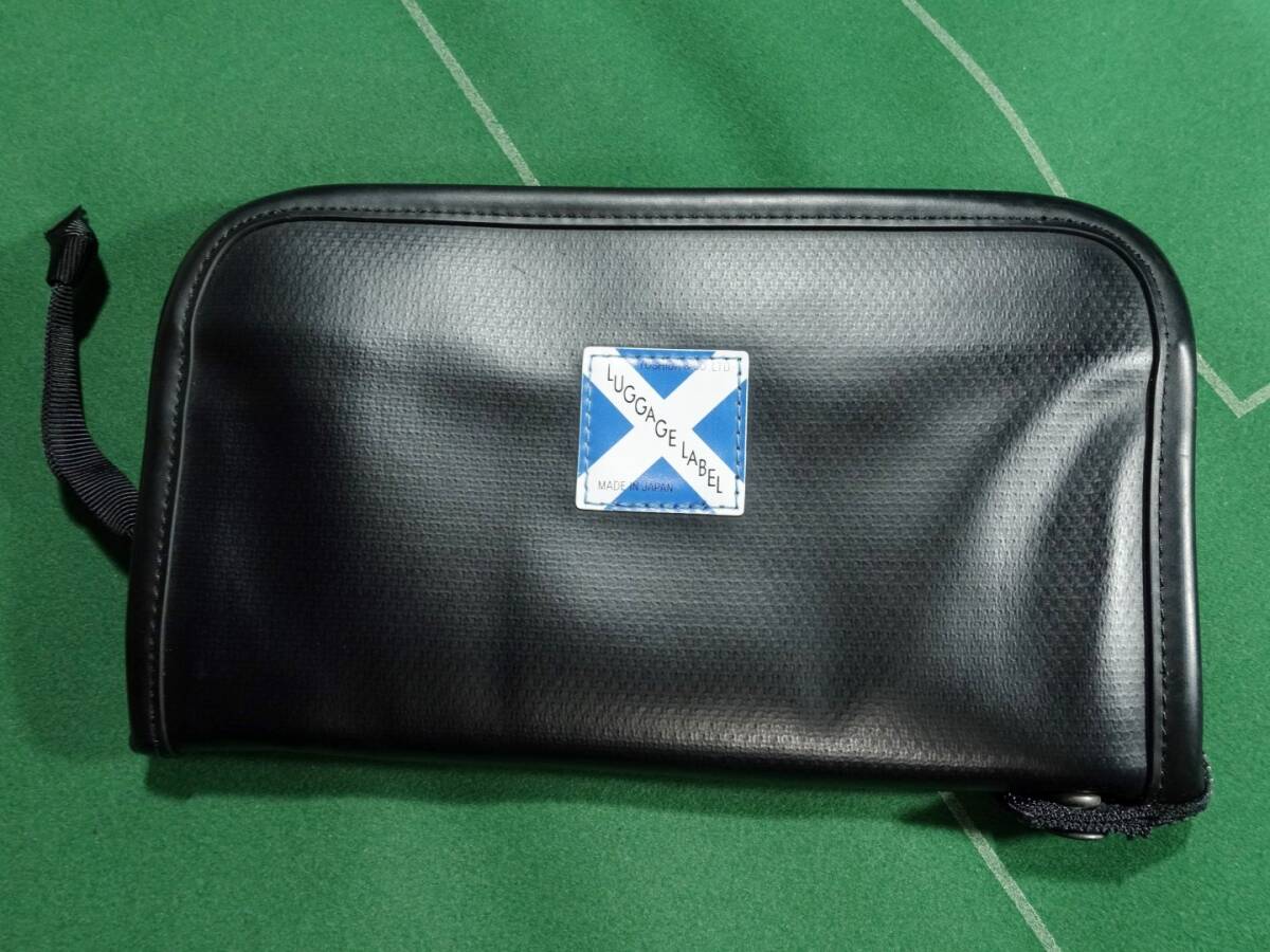 □ラゲッジレーベル ニューライナー 青バッテン PVC加工素材 ラウンドジップ 長財布 ロングウォレット ブラック 美品!!!□