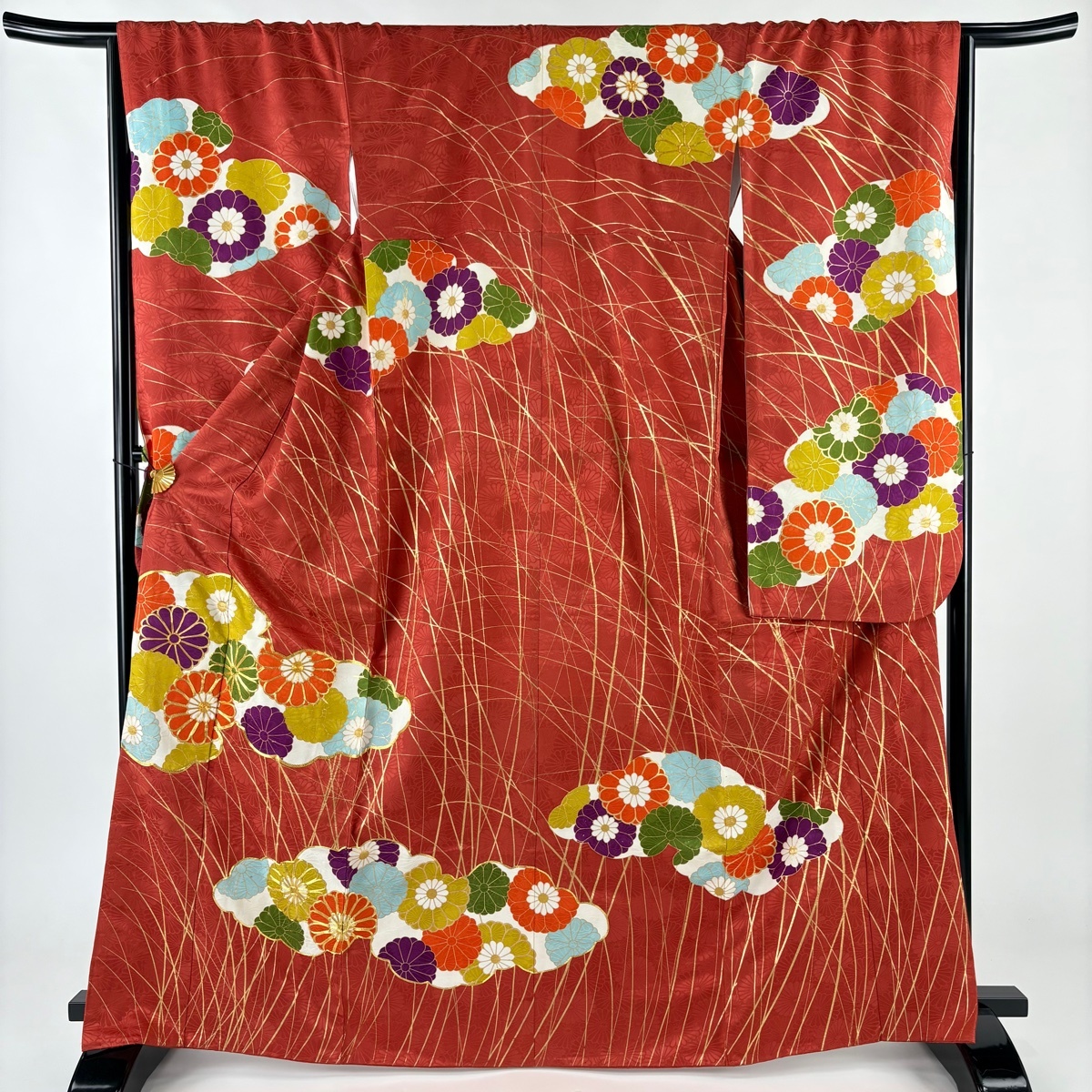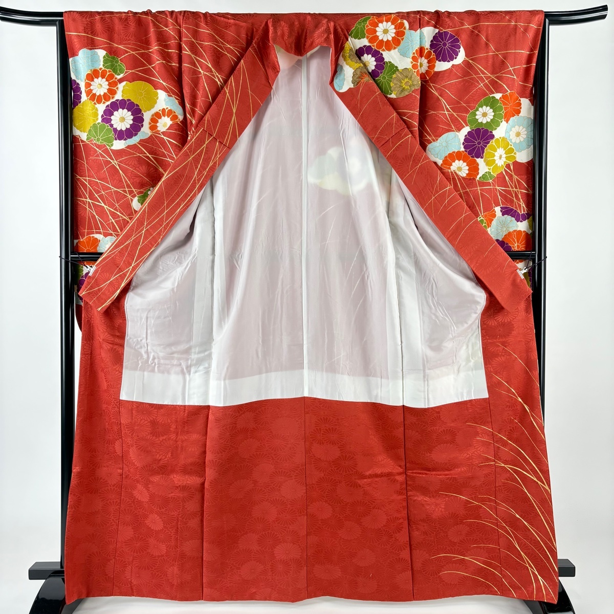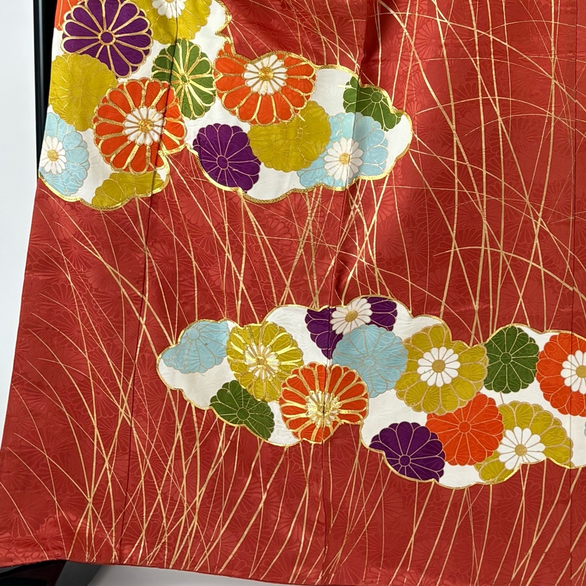 振袖 秀品 雲文 菊 金糸 金彩 赤 袷 身丈164.5 裄丈66.5 M 正絹 【中古】 |