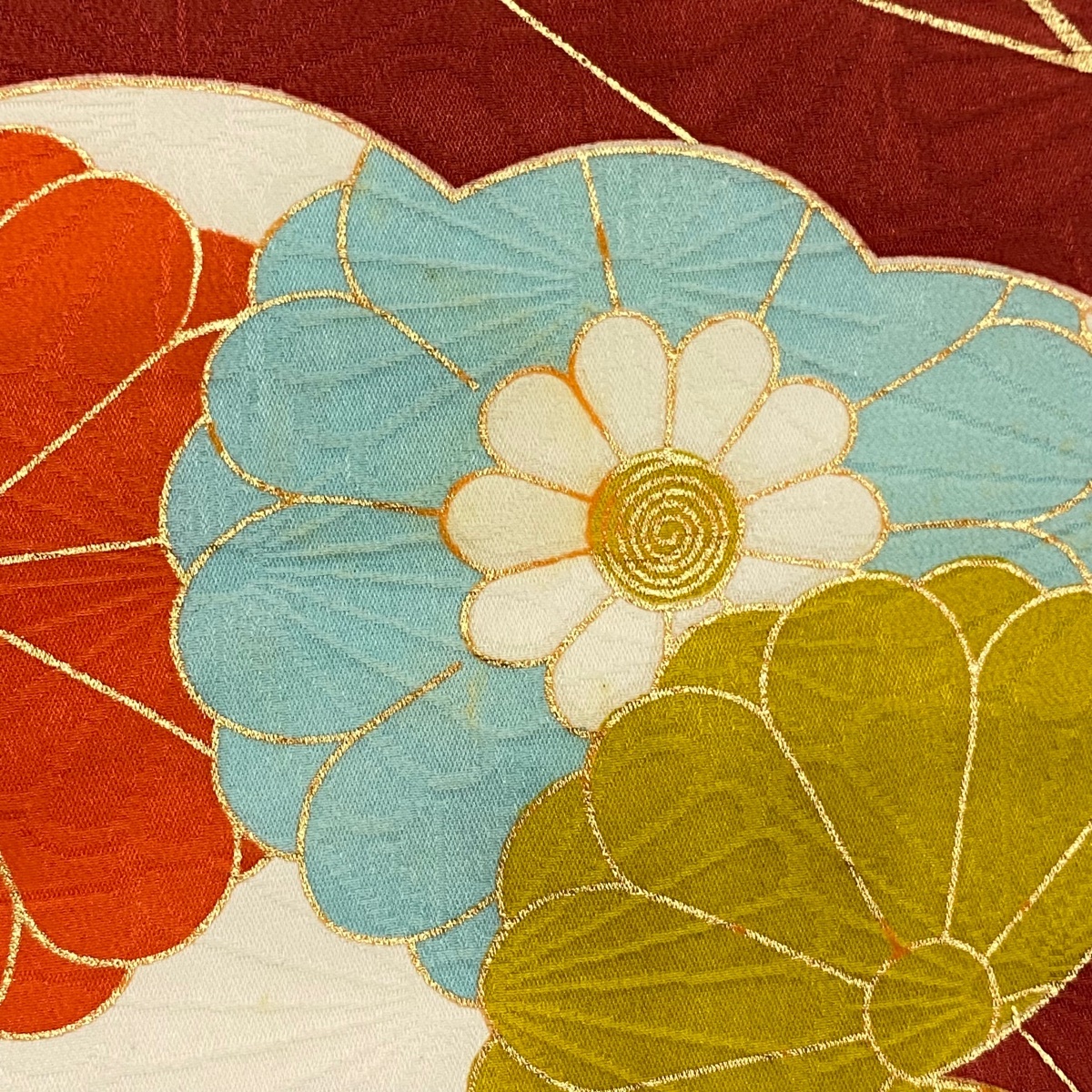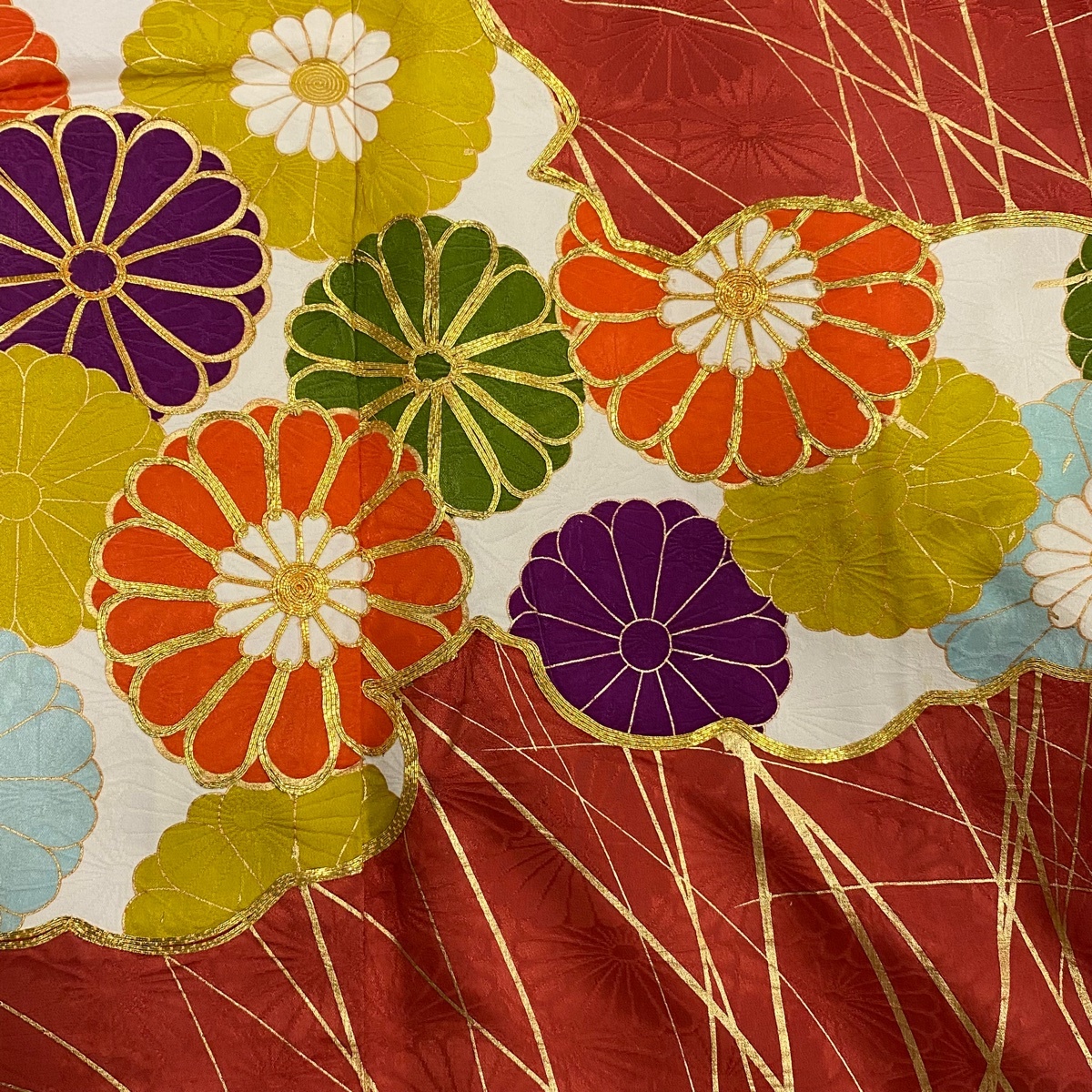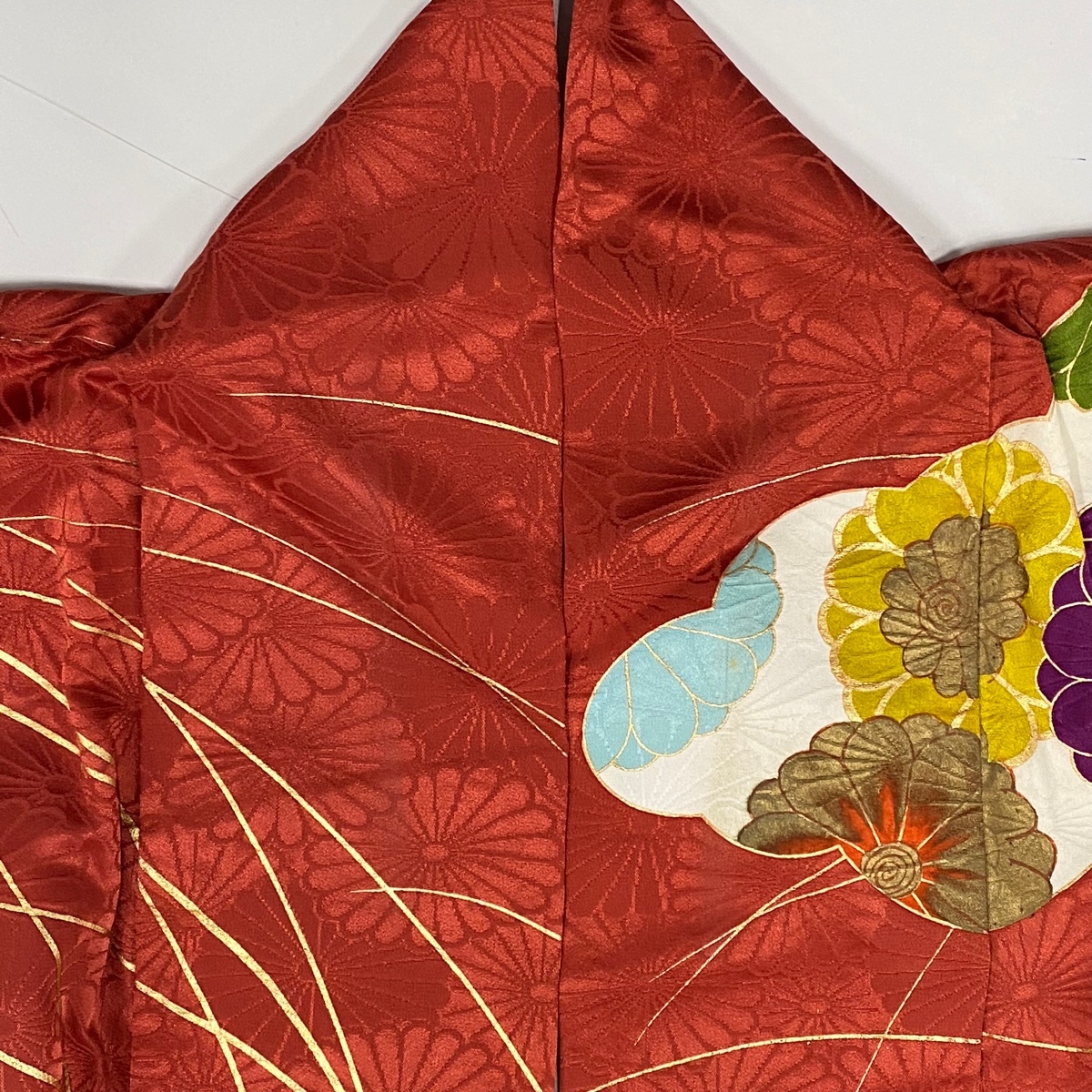 振袖 秀品 雲文 菊 金糸 金彩 赤 袷 身丈164.5 裄丈66.5 M 正絹 【中古】 |
