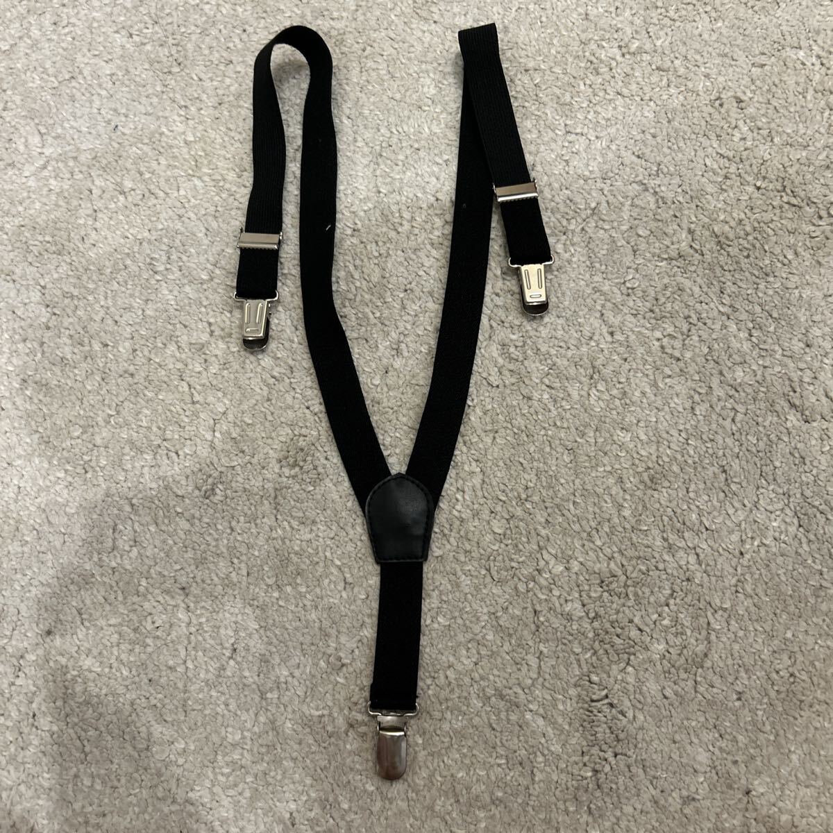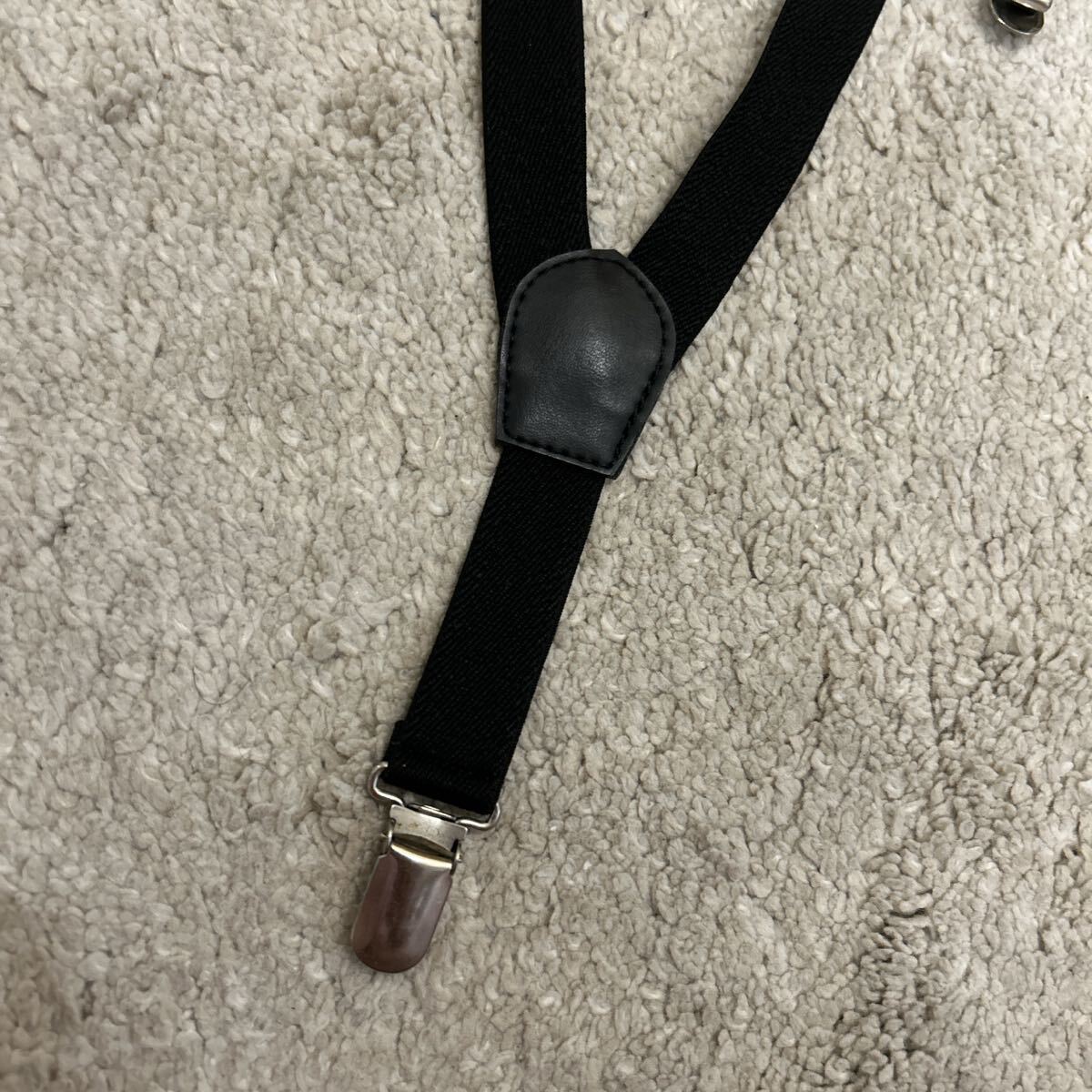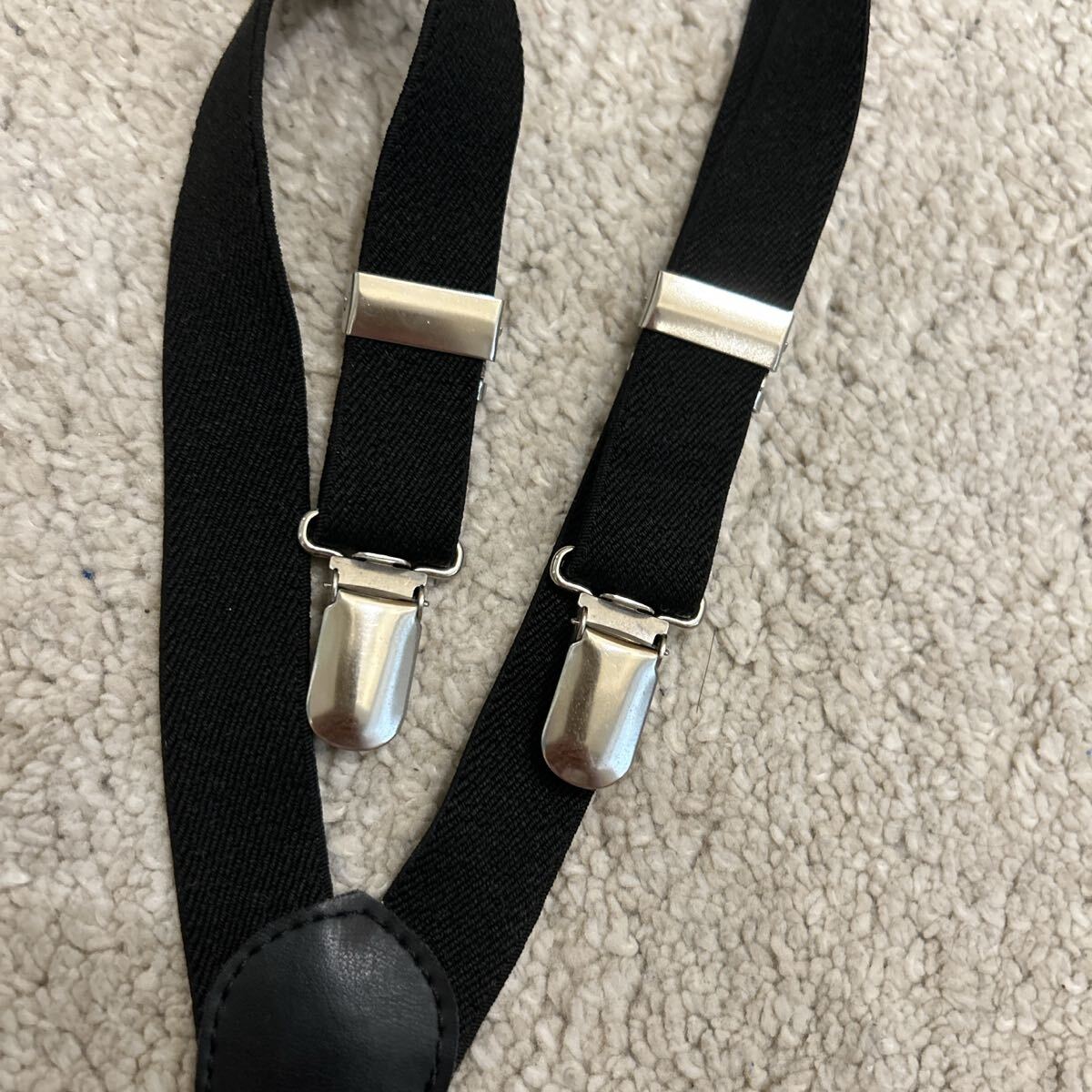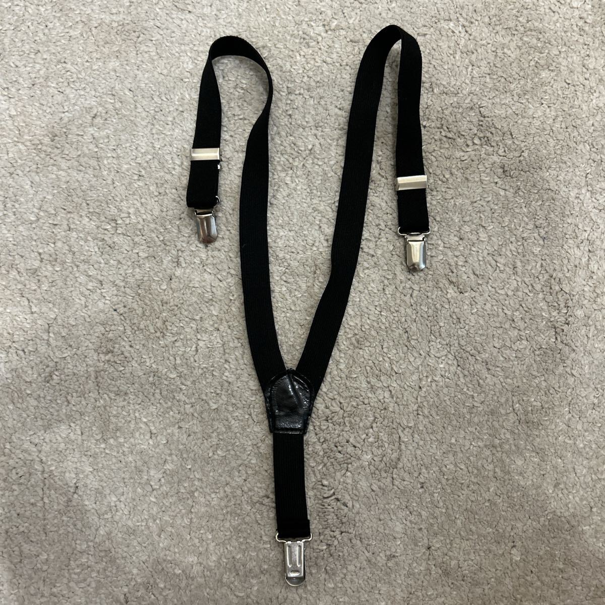 ストレッチ素材のブラックY字型サスペンダー、金属クリップ付き。