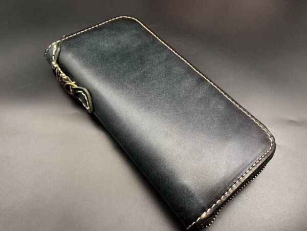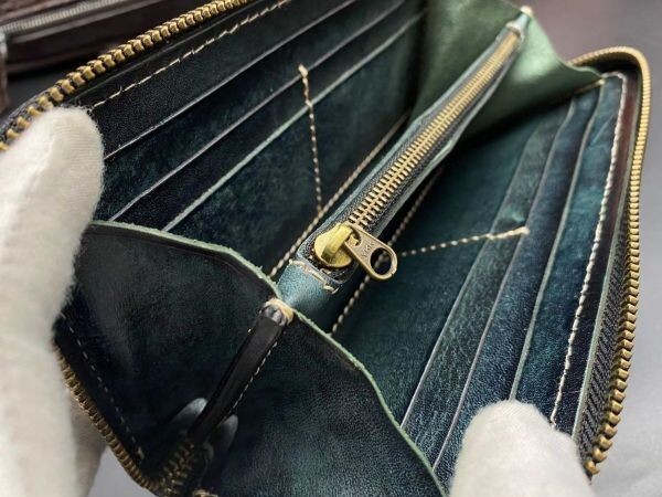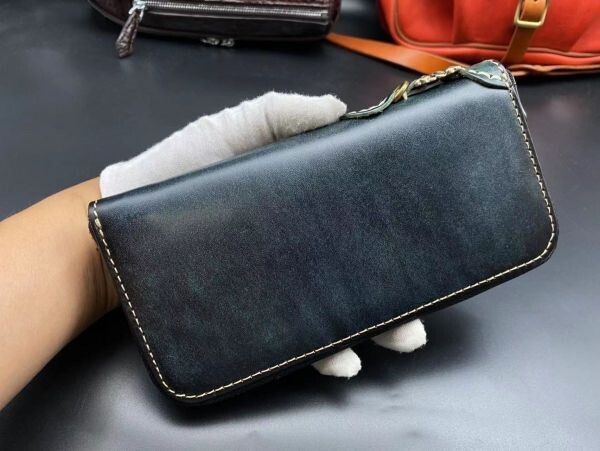 最高の贅沢 新品 栃木レザー本革 長財布 牛ヌメ革 ウォレット 手縫い ハンドメイド ラウンドファスナー 小銭入れあり 手染め グリーン