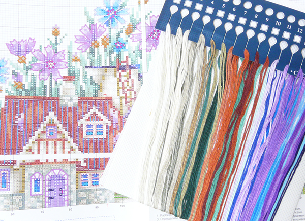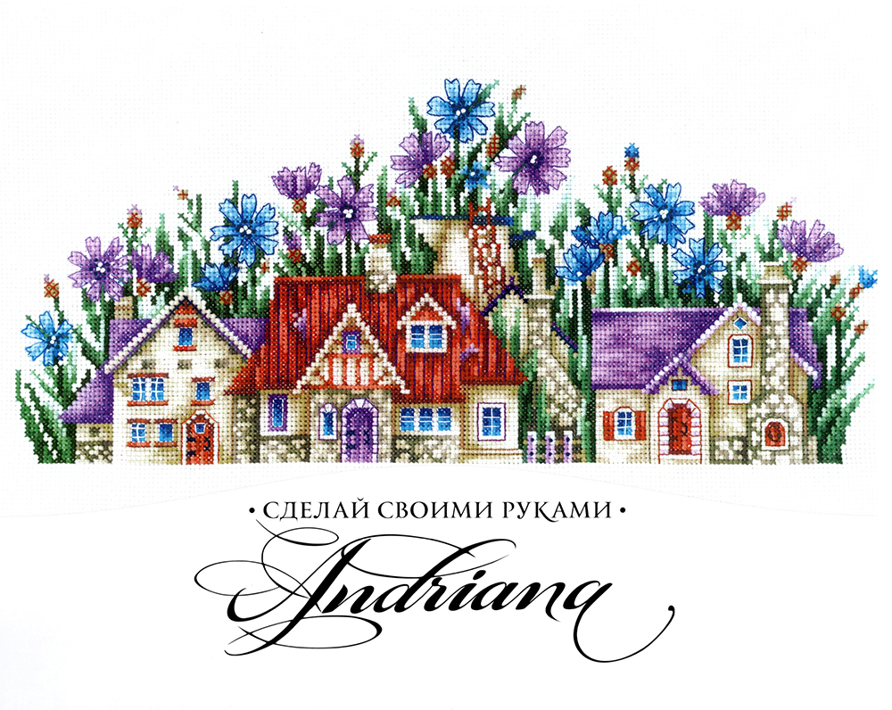 コーンフラワー(ヤグルマギク)が咲き乱れる可愛い街並みのクロスステッチキットです!