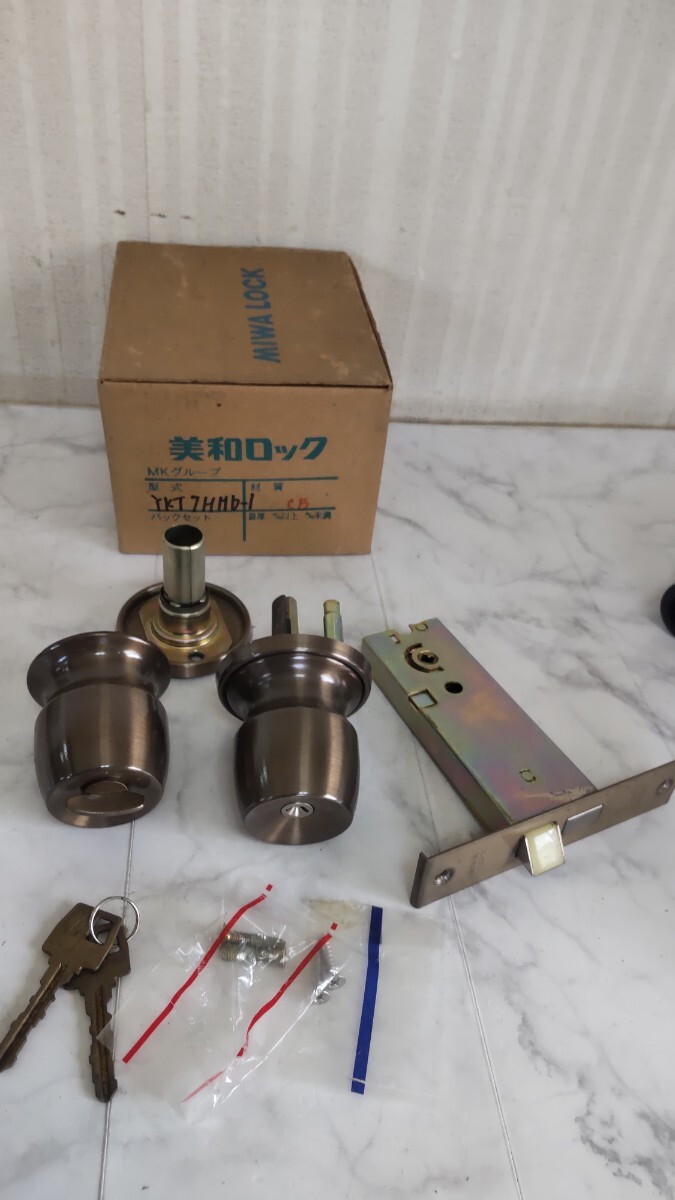 S3312【未使用?】MIWA LOCK/ドアノブ/ドアシリンダー/YKT7HMD-1/框厚40㎜~45㎜/鍵2本付き/鍵交換/箱入/ 美和ロック 現状品