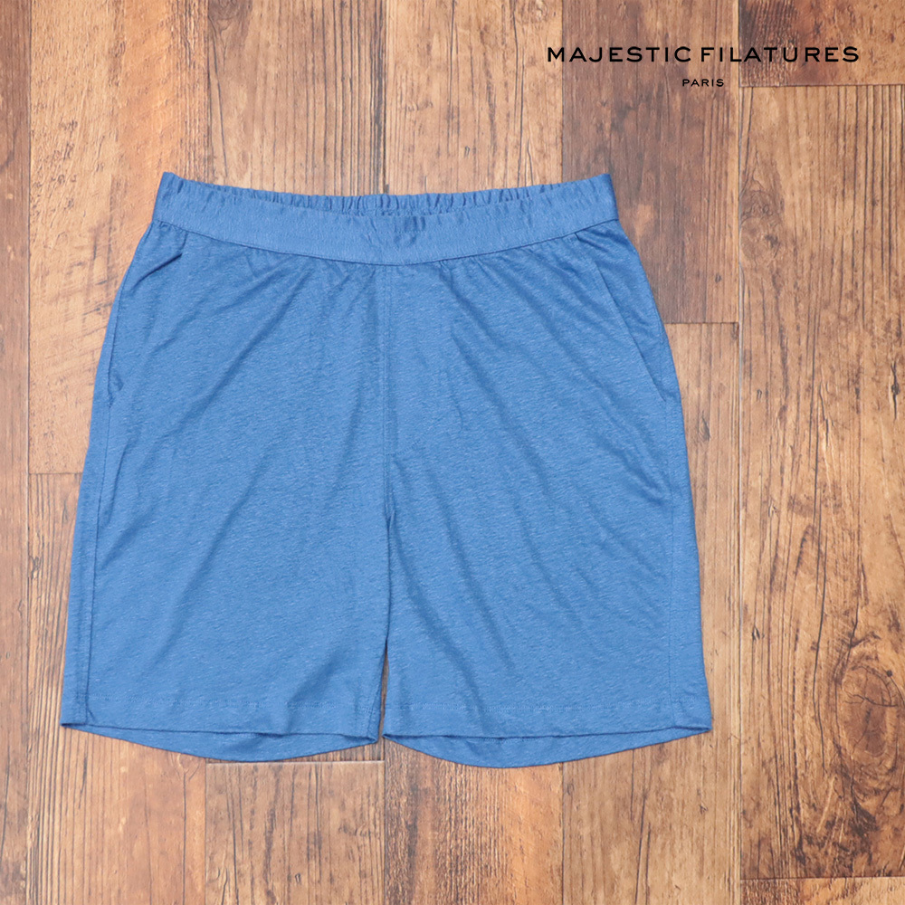 春夏/MAJESTIC FILATURES/Mサイズ/イージー ハーフパンツ M011-HSH018 麻混ジャージー 製品染め 無地 リラックス 新品/青/ブルー/kc342/