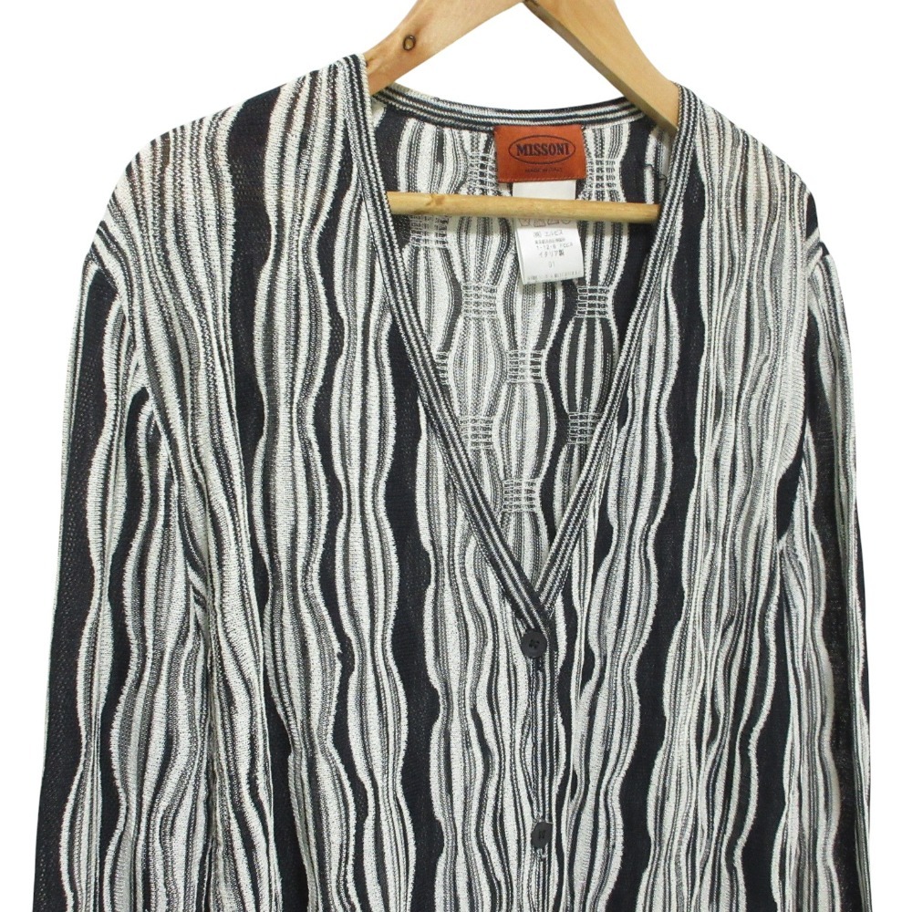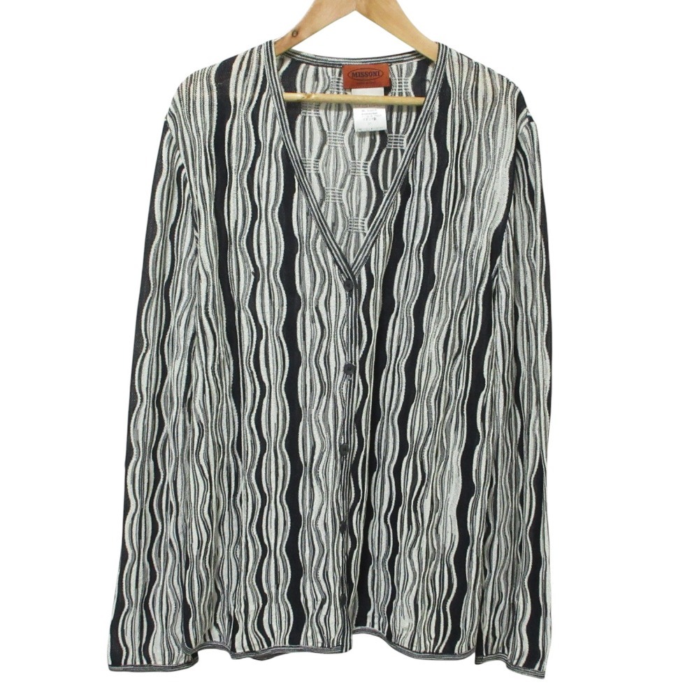 良品 MISSONI ミッソーニ ニット ウェーブストライプ Vネック カーディガン 46 ブラック×ホワイト