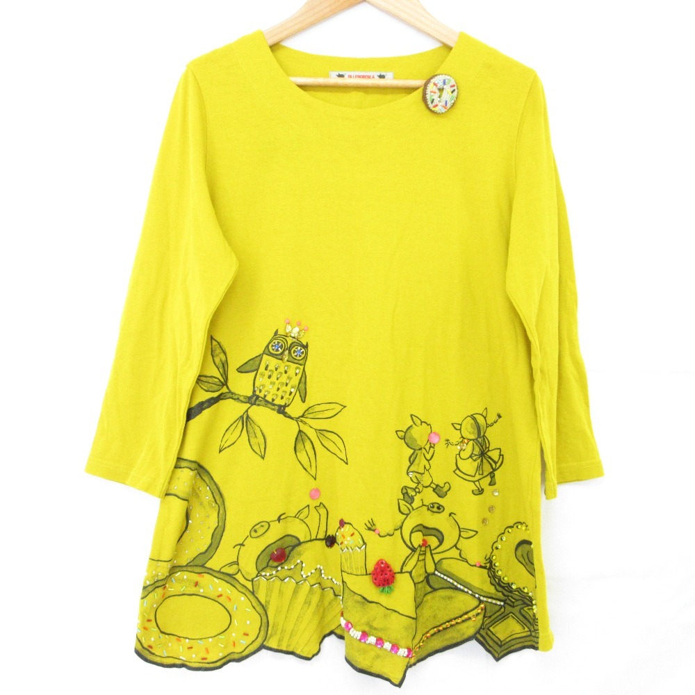 良品 OLLEBOREBLA ALBEROBELLO オレボレブラ アルベロベロ ぶたさん ビーズ カットソー マスタード