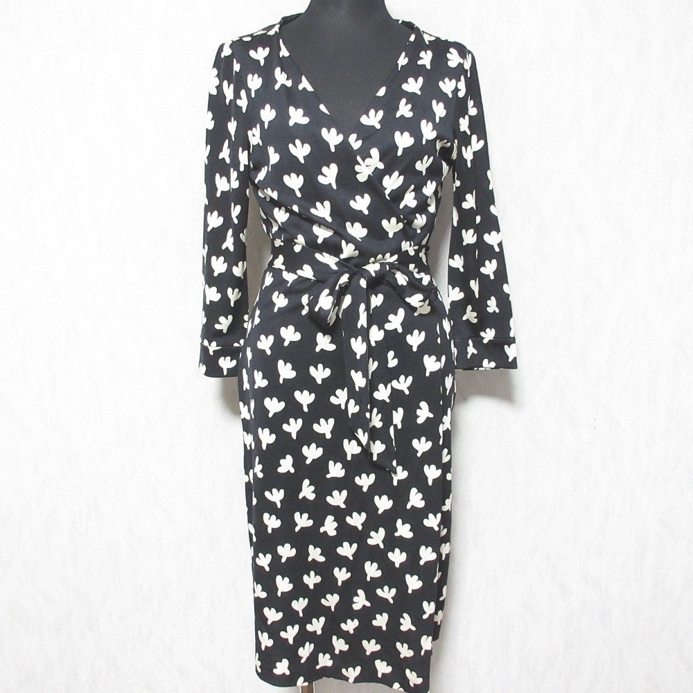 良品 Diane von Furstenberg ダイアンフォンファステンバーグ シルクジャージー ラップワンピース サイズ4 ブラック
