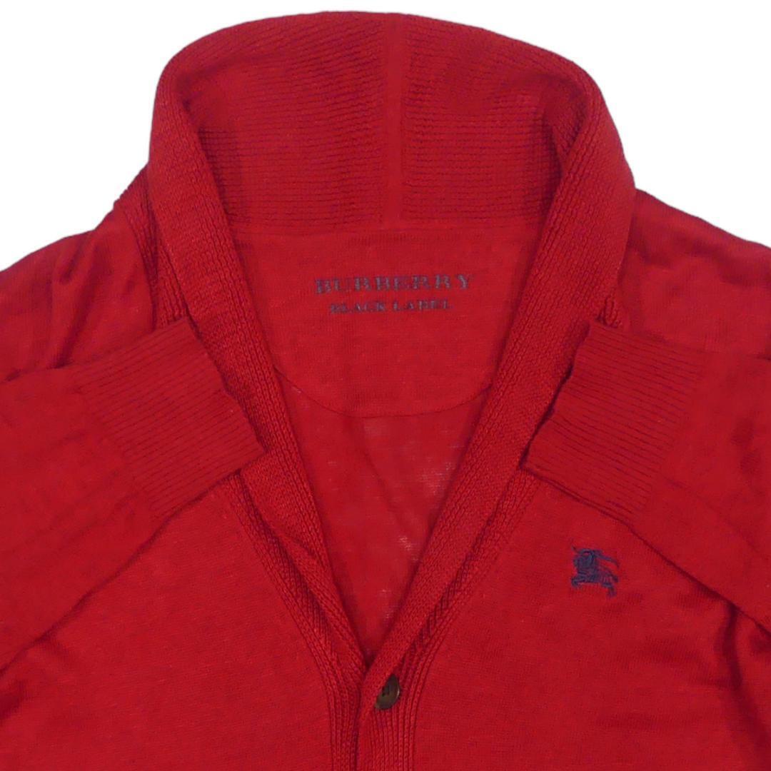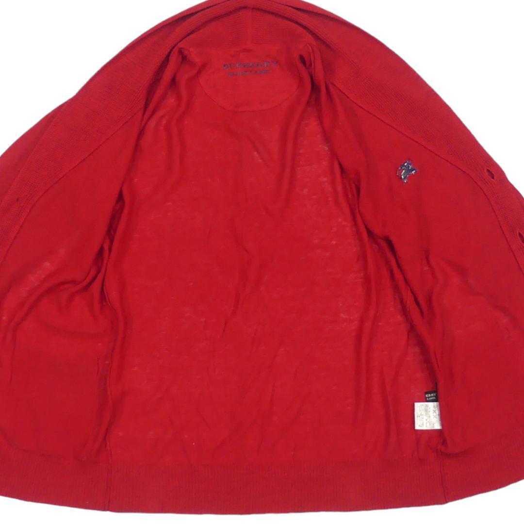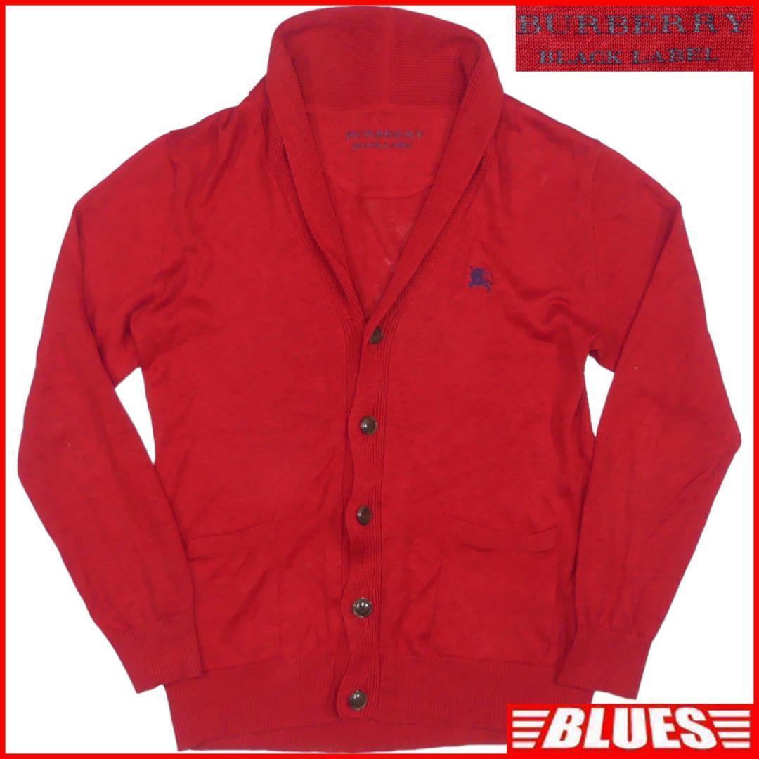 即決★BURBERRY BLACK LABEL★メンズL 廃版 カーディガン ニット セーター バーバリーブラックレーベル 3 赤 リネン 麻 刺繍