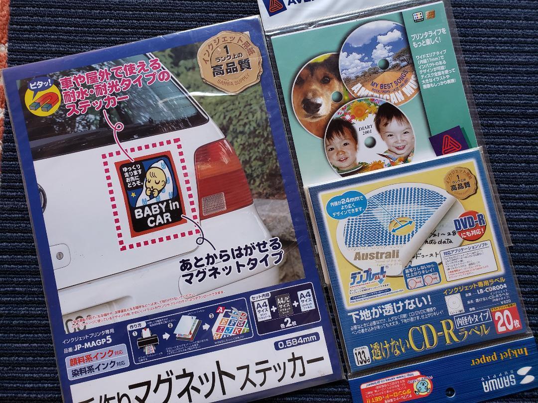 下地が透けない内径小タイプ、ワイドエリアタイプCD DVD用ラベル。3点セット
