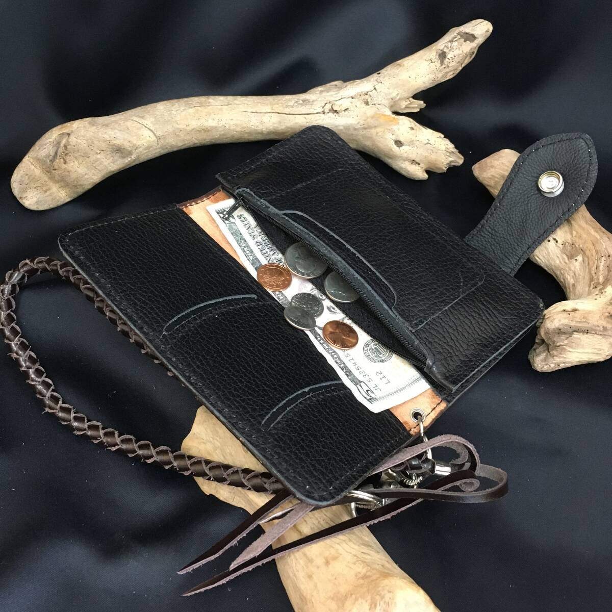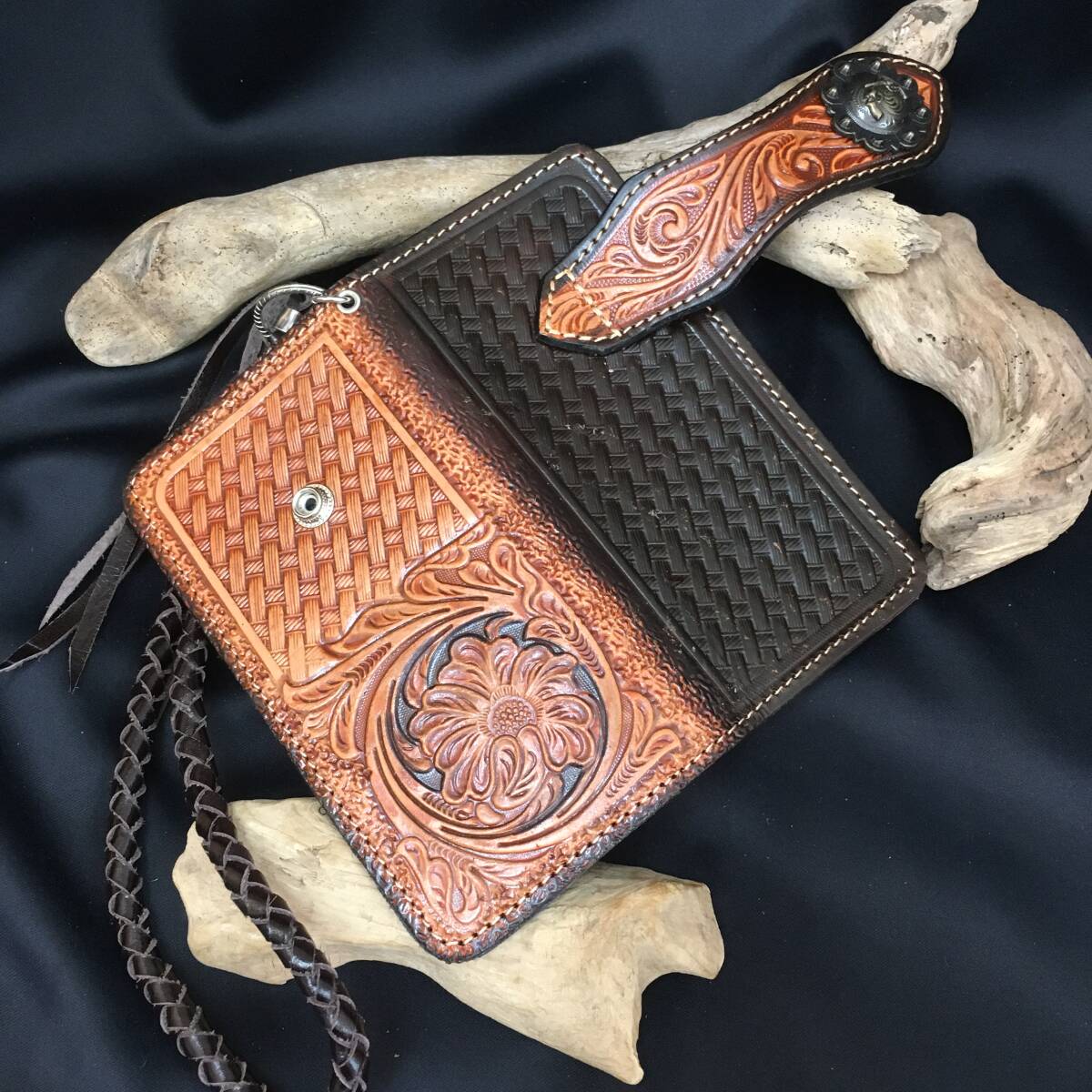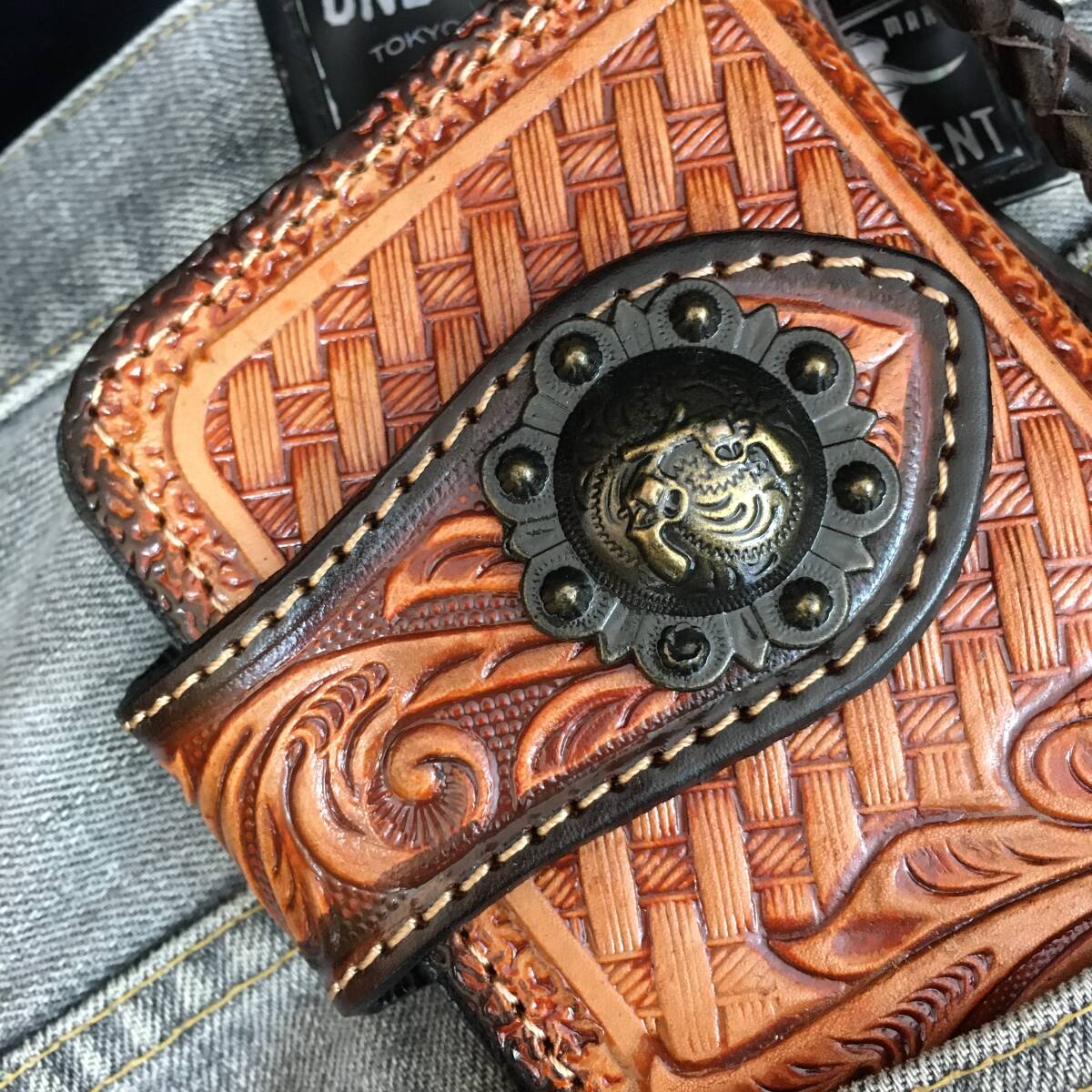 新品 本革レザー カービング型押し 長財布 メンズ ロングウォレット ロープ付き コンチョ ライダース アウトドア ツーリング 送料無料 73