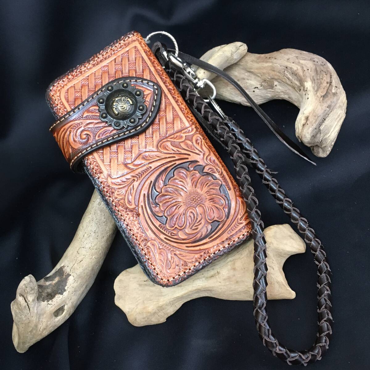 カービング型押しレザーロープ付きコンチョ長財布です。(No.73)