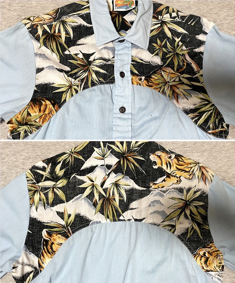 レア 80's ケニントン 虎・竹柄 プリント ヨーク切替 半袖 シャツ KENNINGTON 和柄 プレスト カリフォルニア・ルック レトロ 80年代 古着