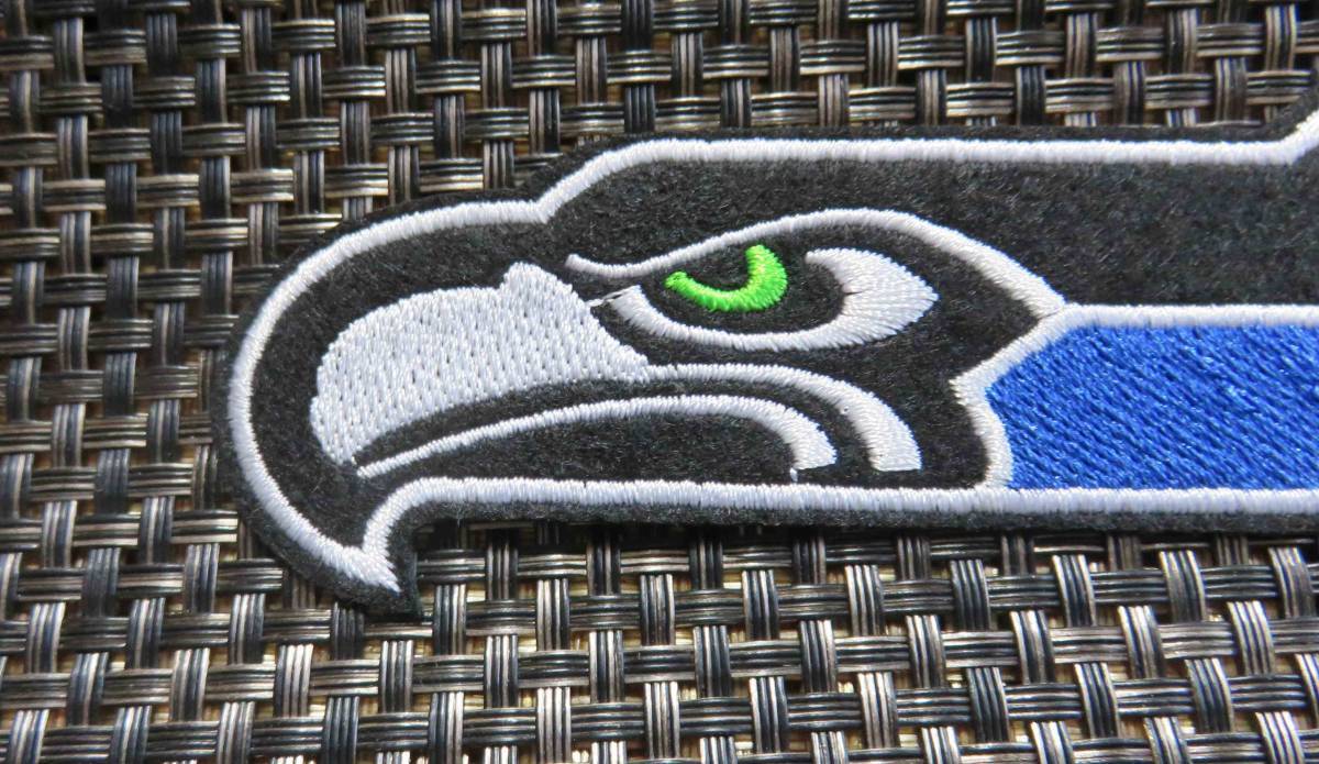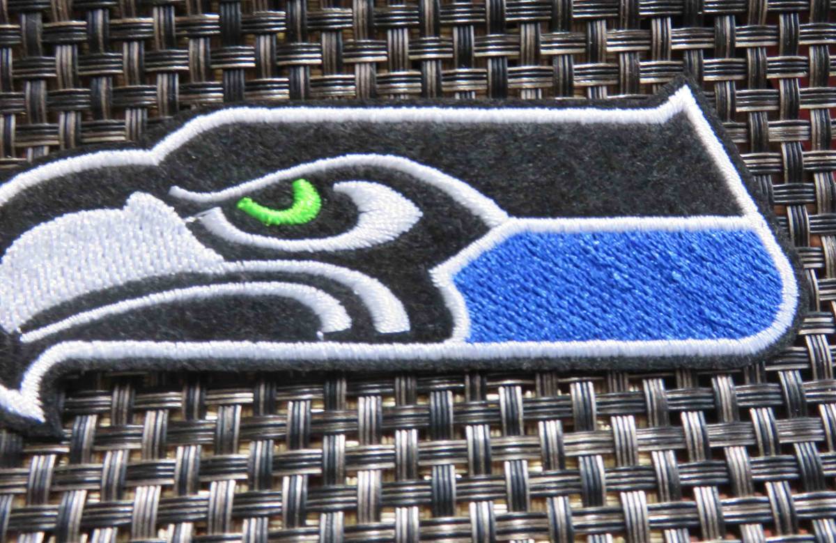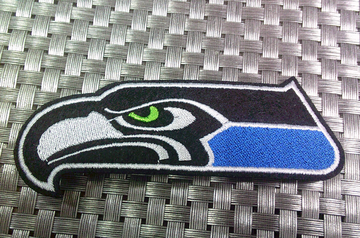 《左SH黒青海鷹》球魂NFLシアトル・シーホークスSeattleSeahawks刺繍ワッペン■激渋US洋服DIYアメリカ◎アメフト アメリカンフットボール