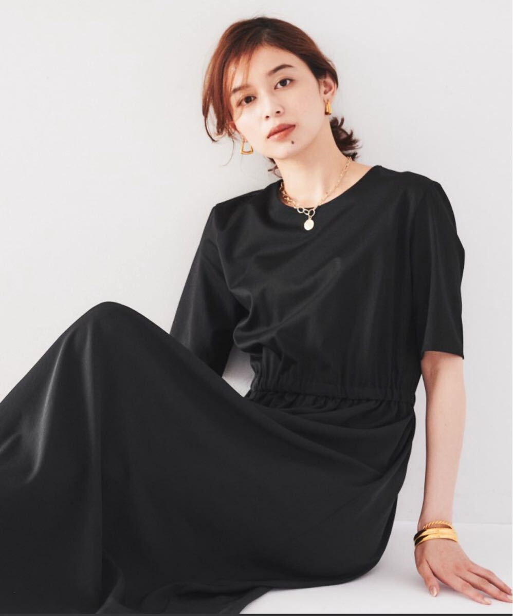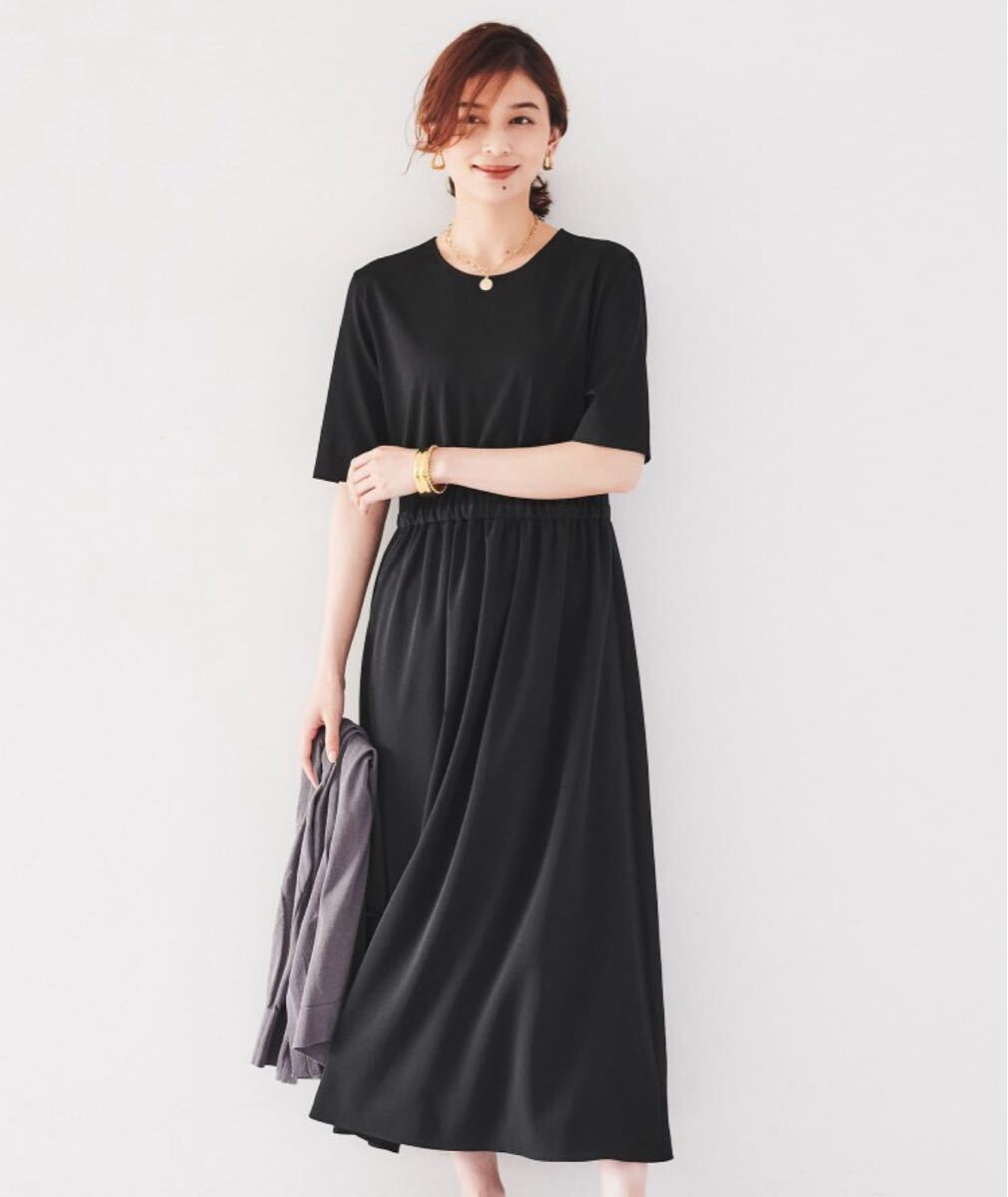 【ジャージ素材/5分袖】異素材ドッキングワンピース