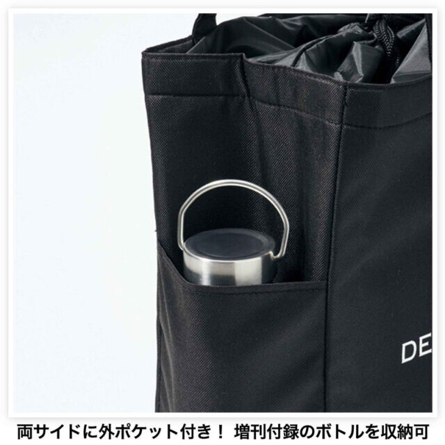 ③両サイドに外ポケット付き! 増刊号付録のボトルを収納可
