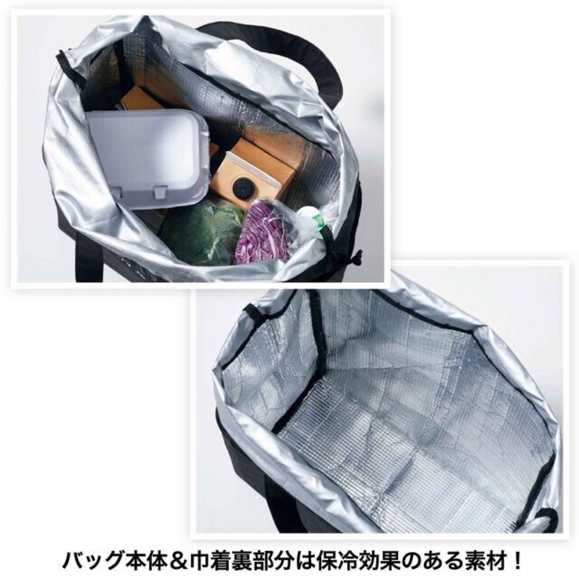②バッグ本体&巾着裏部分は保冷効果のある素材!