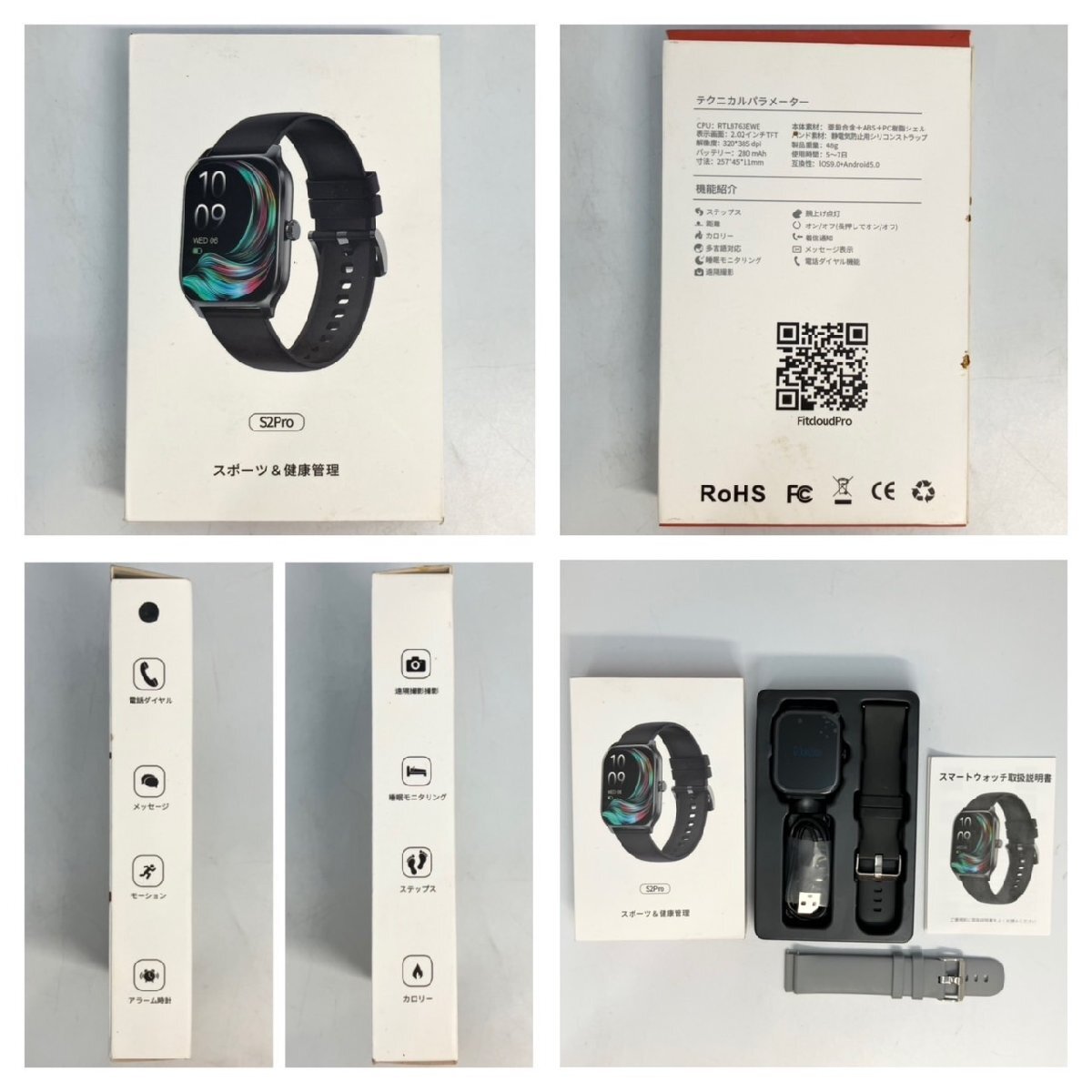 | 内容品 | スマートウォッチ本体、シリコンベルト×2、充電ケーブル、説明書、箱 |