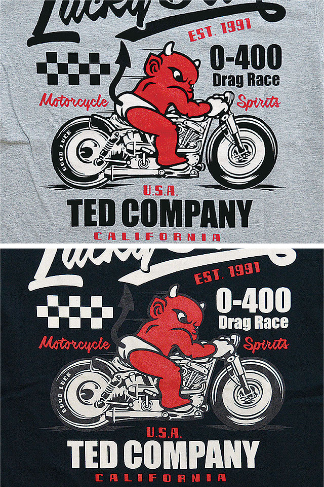 テッドマンから「MOTORCYCLE半袖Tシャツ(TDSS-542)」のご紹介です! テッドマンがバイクにまたがりドラッグレースで疾走する様子のデザインです。 生地はストレッチのきいた、さらりとしたものを使用。 | ||||||||||||||||||||||||||||||