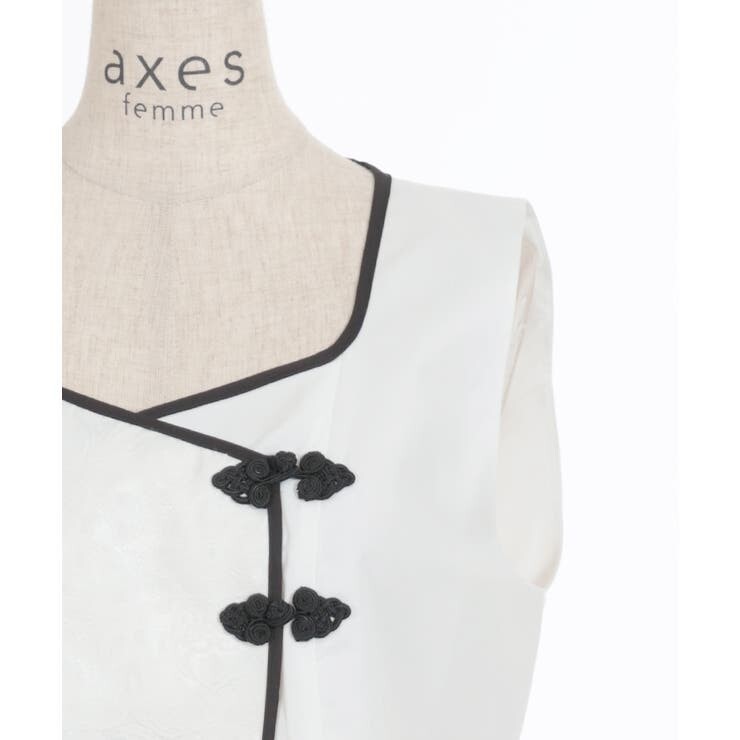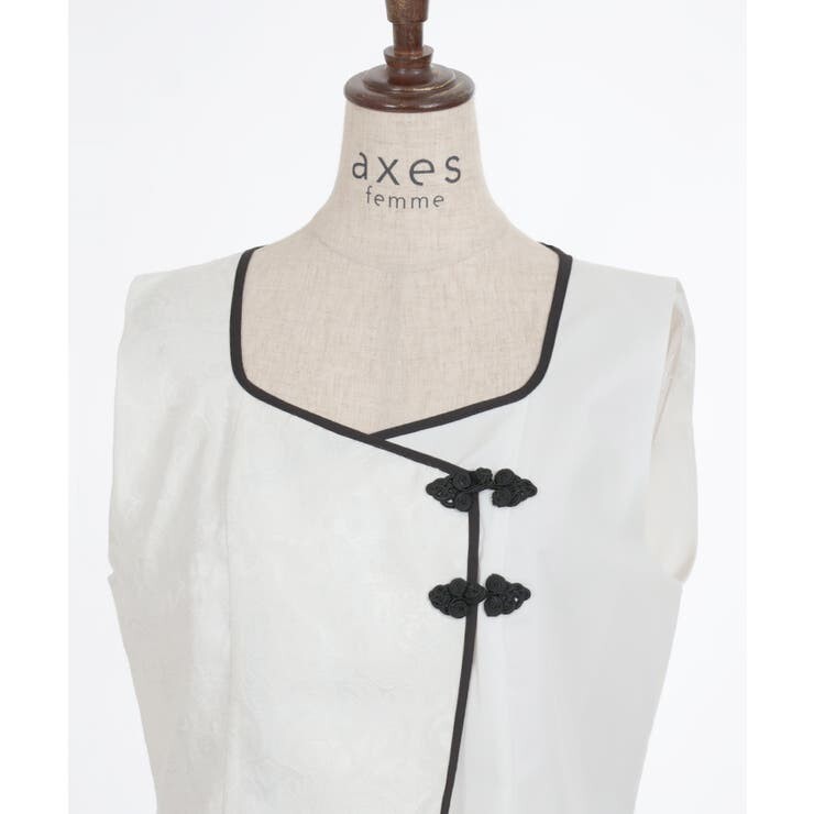 チャイナ釦をあしらいジャカードと切り替えたデザイン。