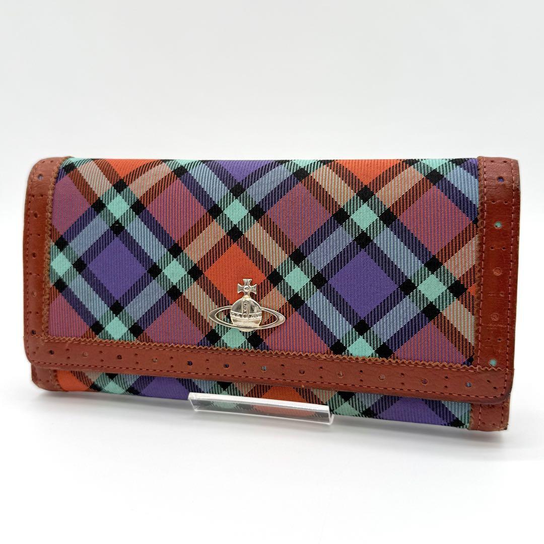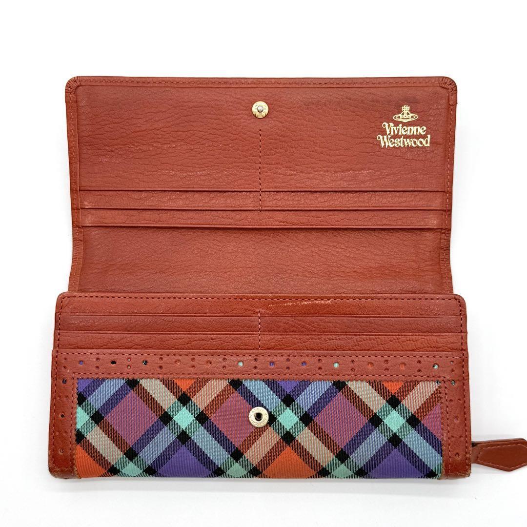 【良品】Vivienne Westwood ヴィヴィアンウエストウッド 長財布 ロングウォレット チェック ORB ブラウン フォーマル レディース AA110520A