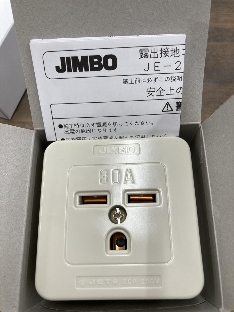 JIMBO ■商品名 露出接地コンセント ■型番 JE-2E302 |