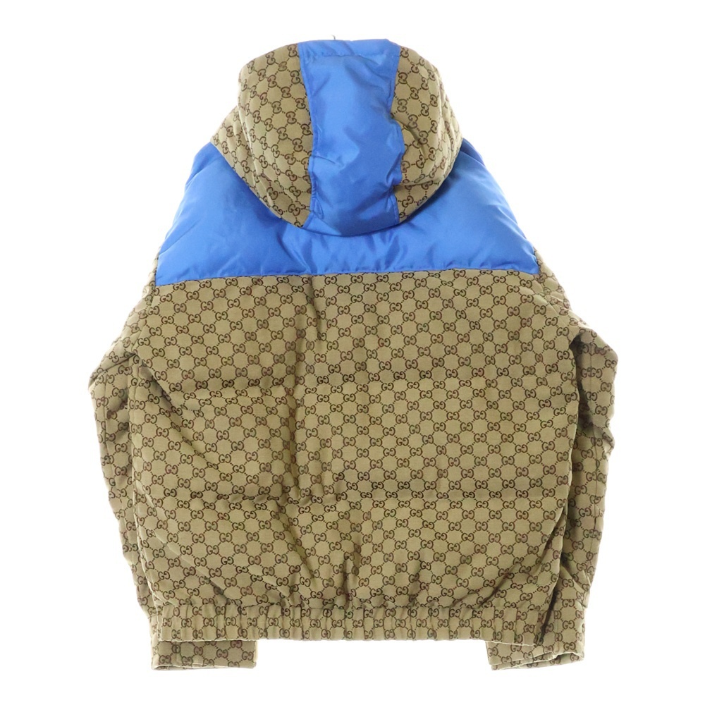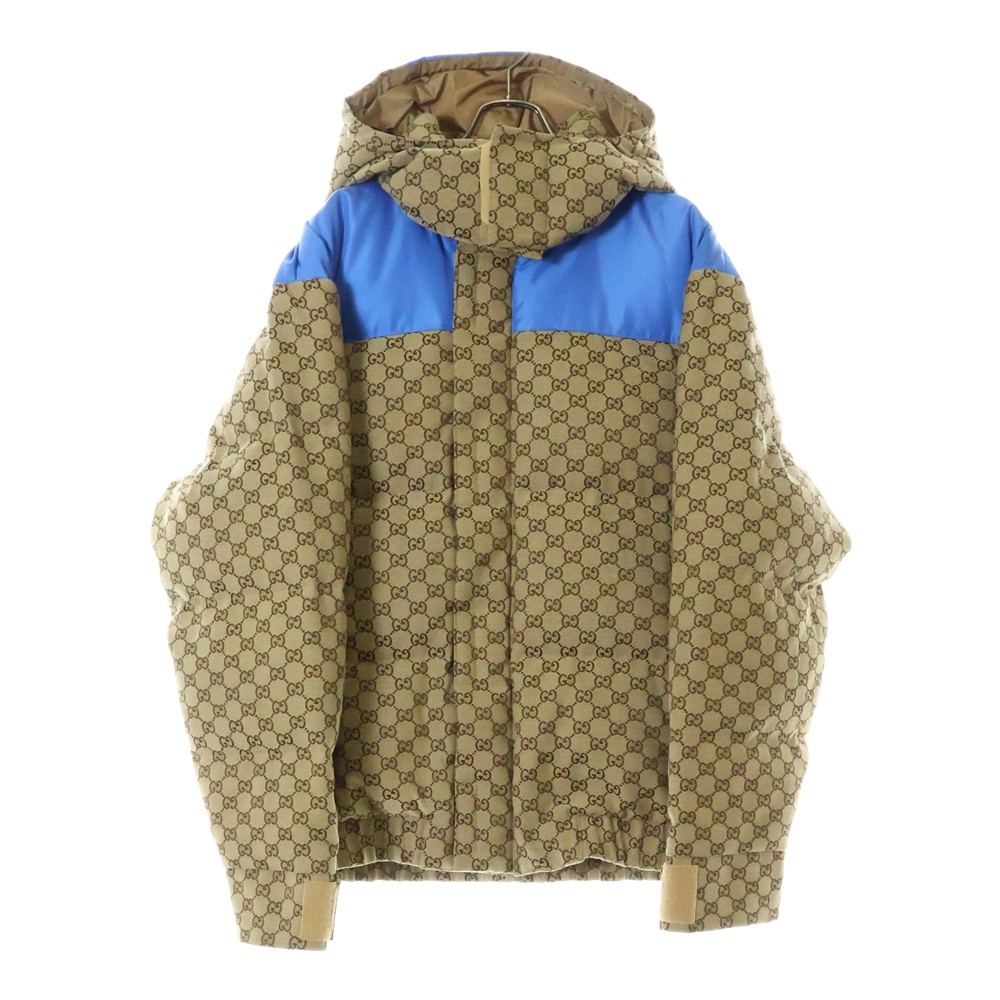 品名GG JACQUARD HOODED DOWN JACKET GGコットンキャンバス 総柄 パデッド フーデッド ダウンジャケット ベージュ/ブルー 751395