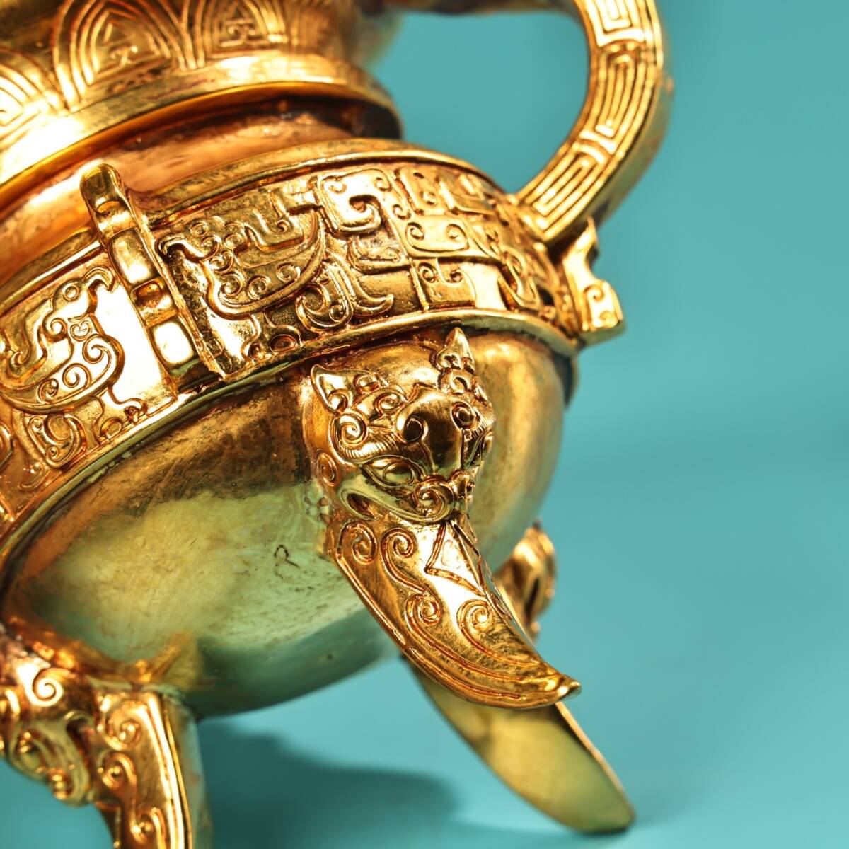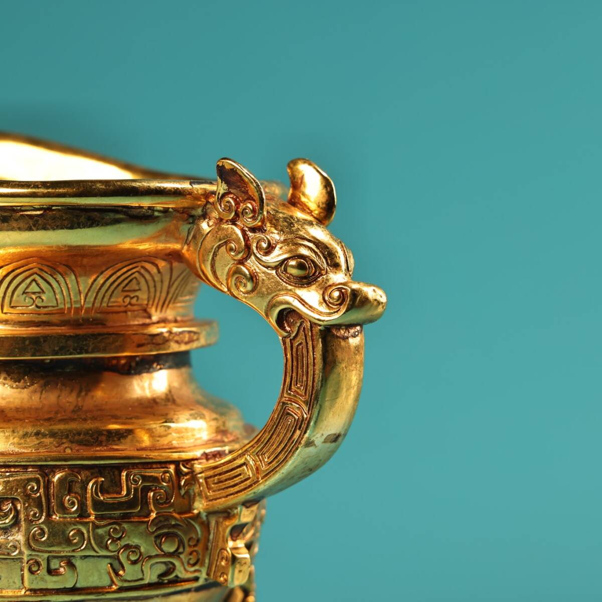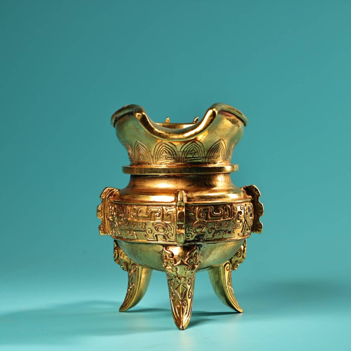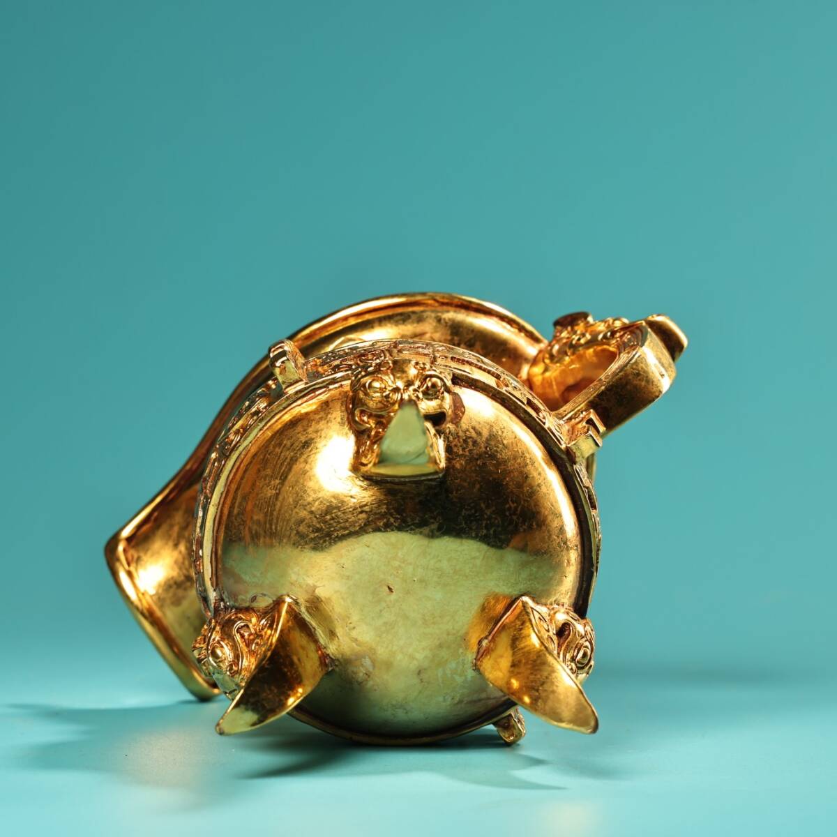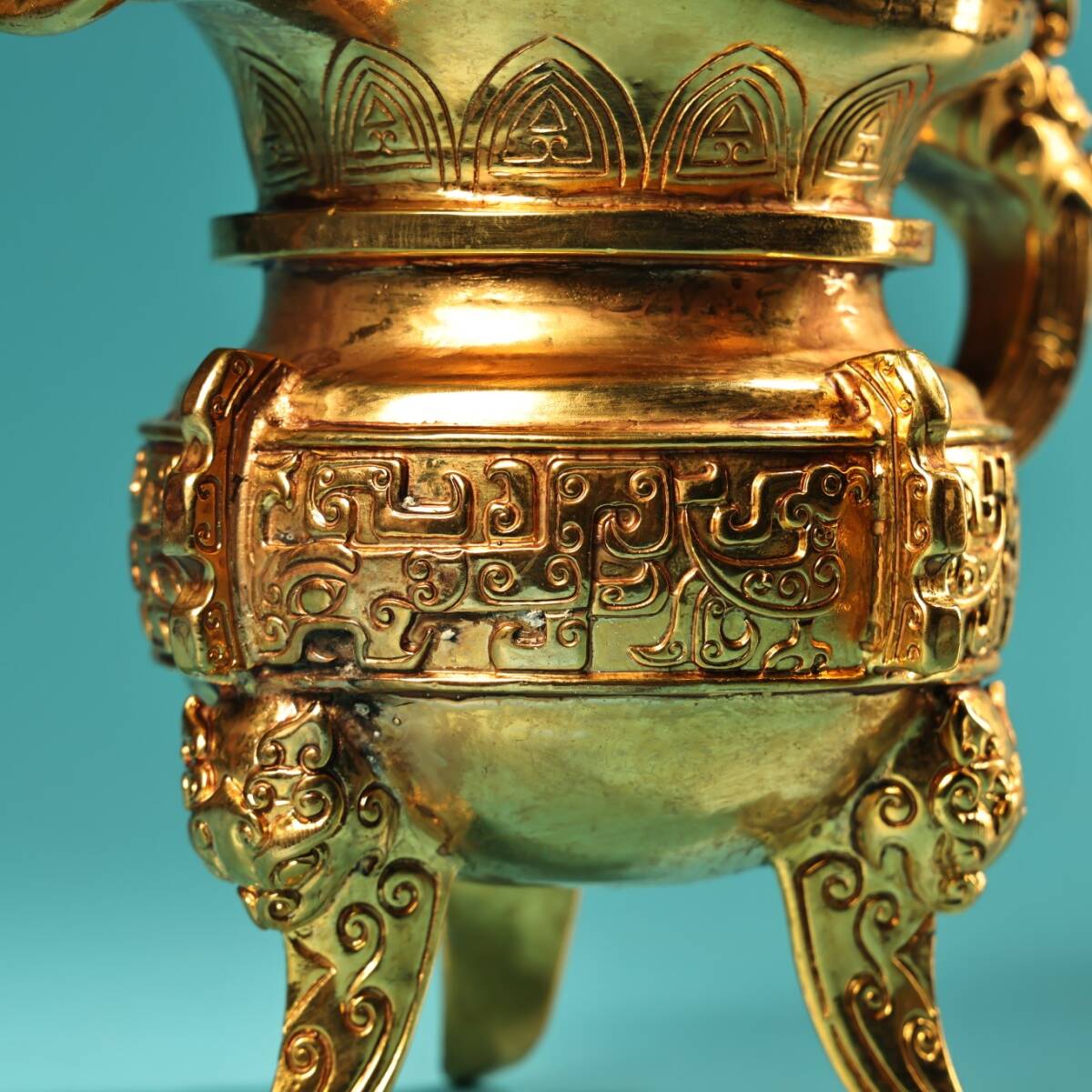 唐物 清 純銅 彫刻 鏨花塗真金 三腿酒杯 銅製品 銅器 極細工 古美術品 時代物 中国古玩 骨董品 D68