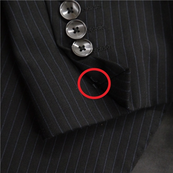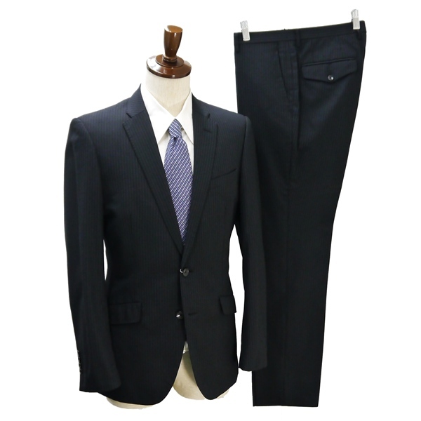 表地(全体的)状態:B(ジャケットの両袖に弱めのてかりと右袖口の開き見せ裏側にほつれが見受けられます。スラックス股上から両膝下にてかりが見受けられます。その他の状態は良い事から、今後もまだまだご愛用頂けるお品だと思われます。)