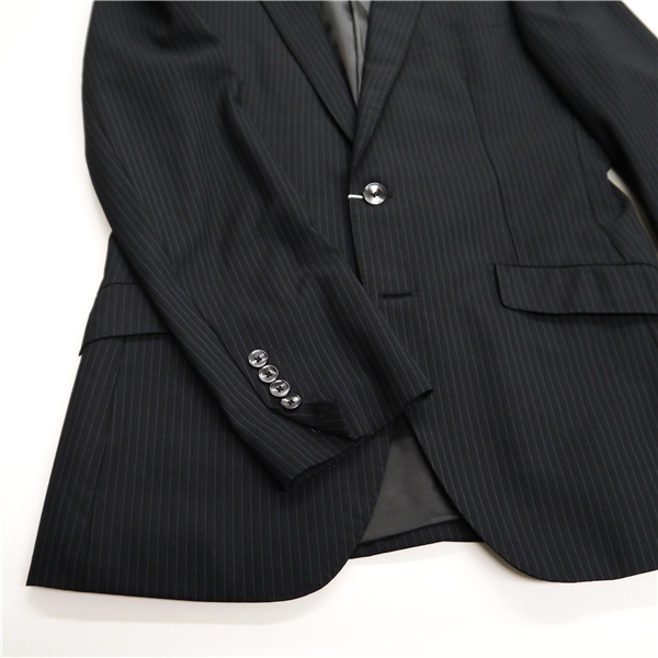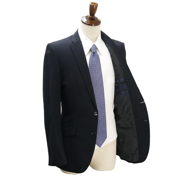 ・春秋冬対応。2つボタンシングル。総裏地仕上げ。センターベント。フラップポケット。ネーム刺繍なし。開き見せ。