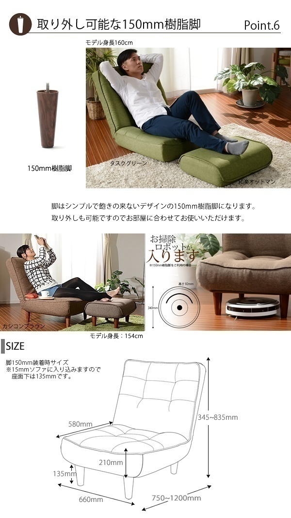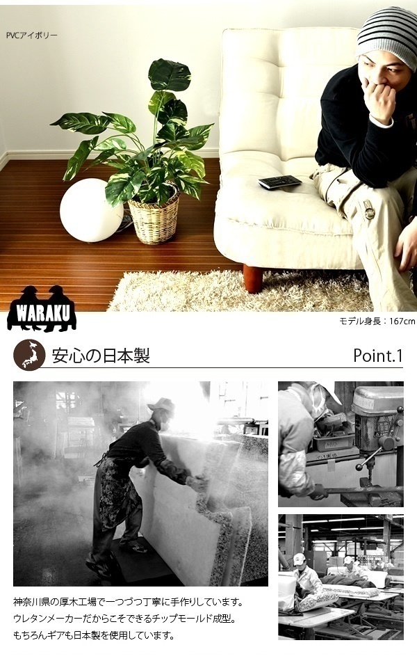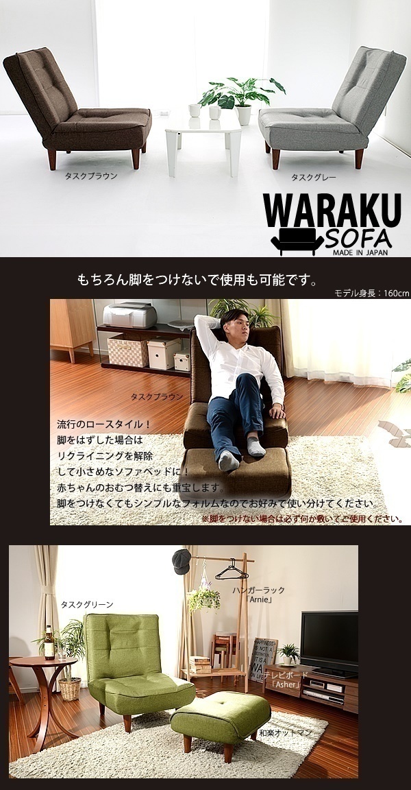 | 商品説明 | 座面にはポケットコイルスプリング搭載。 【仕様】 ■サイズ:約幅660×奥行750~1200×高さ(脚なしの場合)210~700mm ■座面厚さ:約210mm ■重量:約11kg ■材質:[構造材]スチールパイプ [クッション材]ウレタン モールド成型 [生地]ファブリック ポリエステル100% ■機能:(背)3段階リクライニング ■生産国:日本 ■出荷タイミング:約1週間でのお届けになります。 ※ご注文をいただいてからひとつひとつ丁寧に作っております。 |