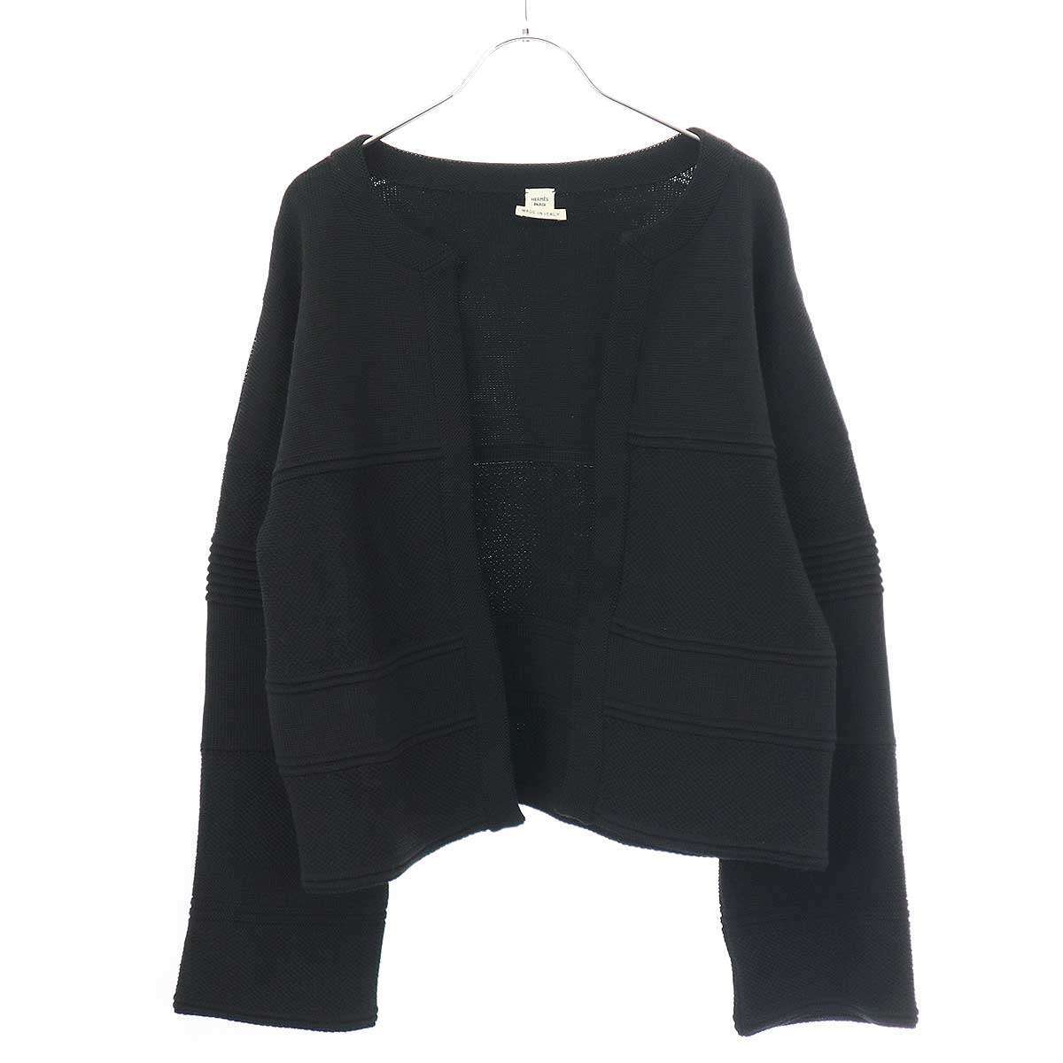 HERMES エルメス ジャガードニットボレロカーディガン ブラック 40 ITUQET64LO96