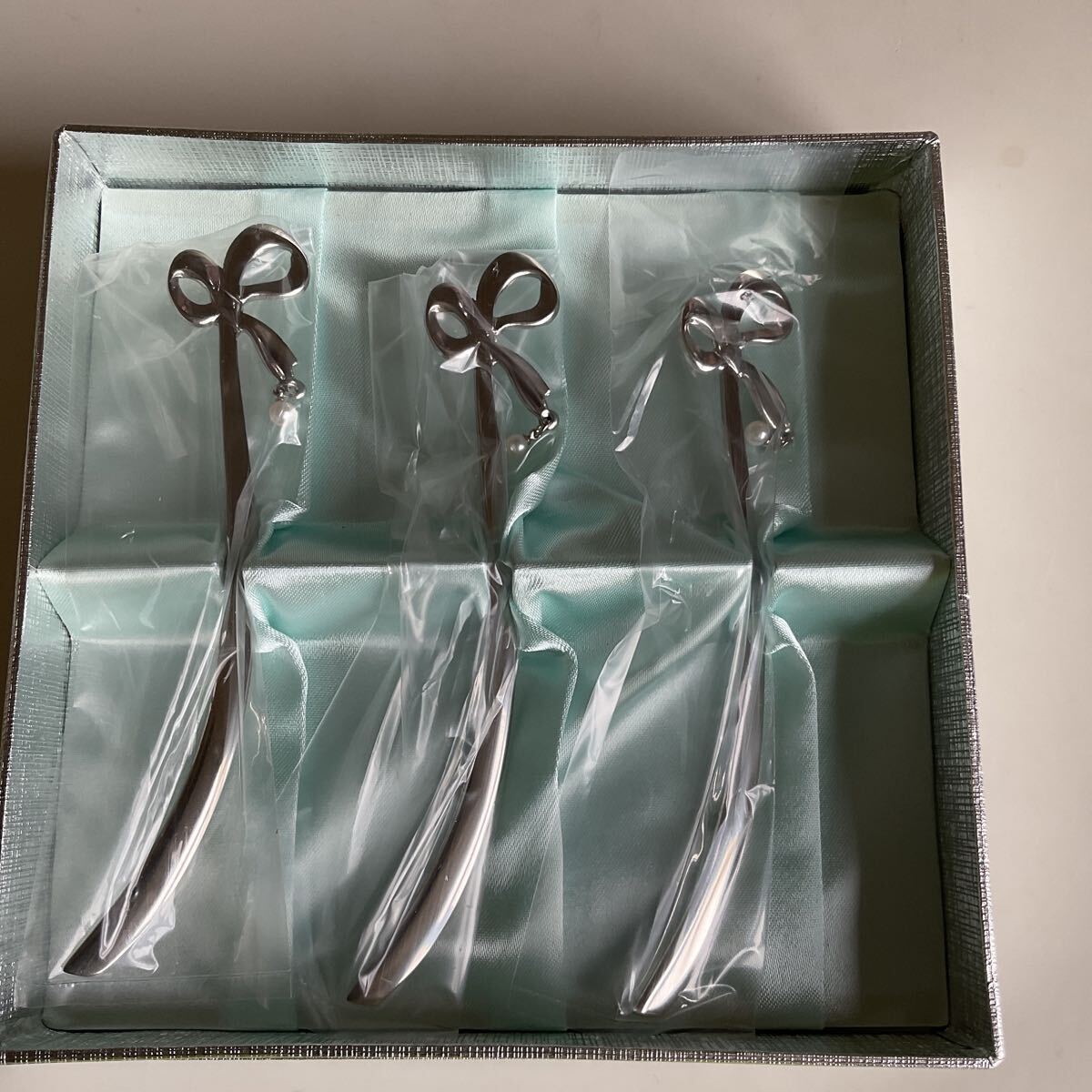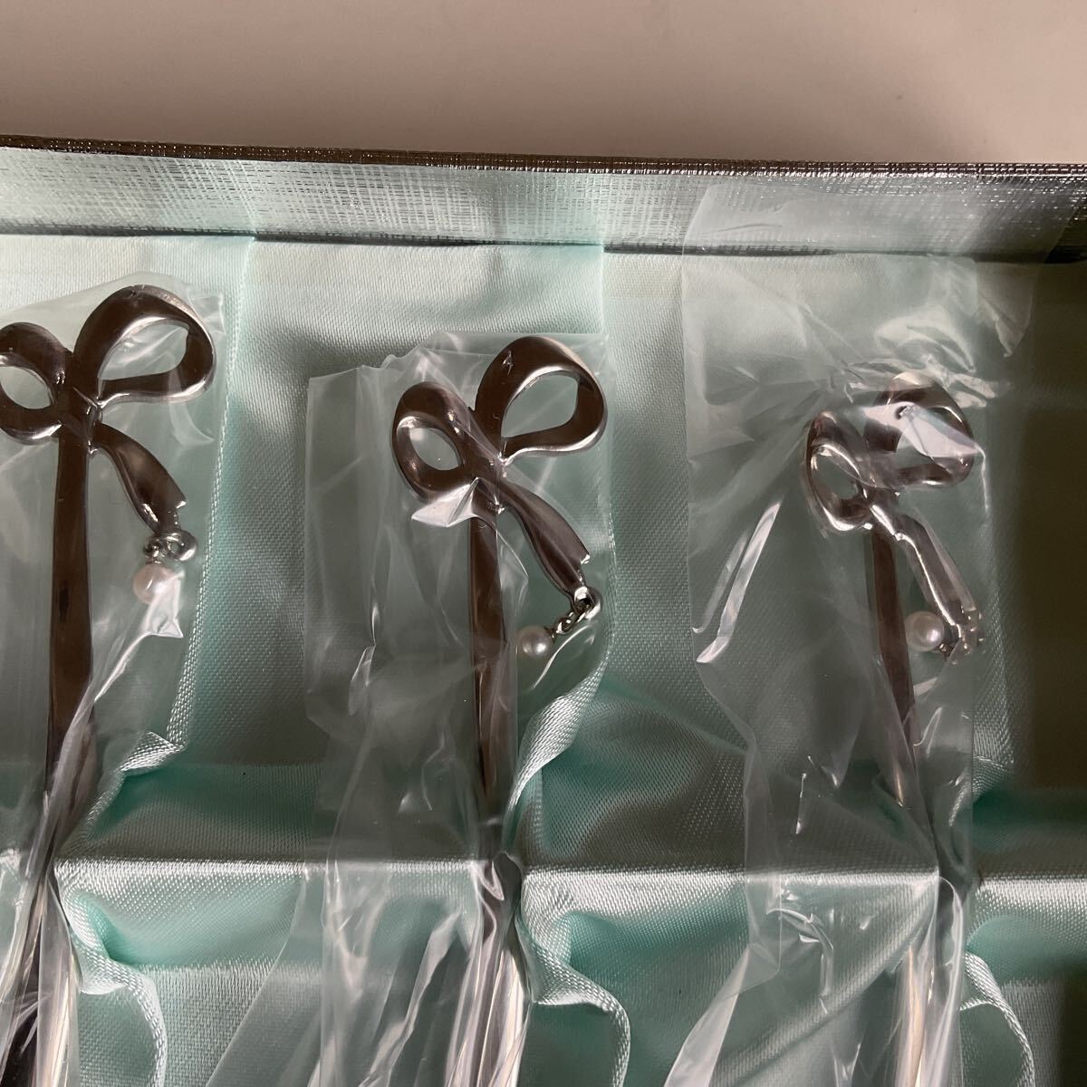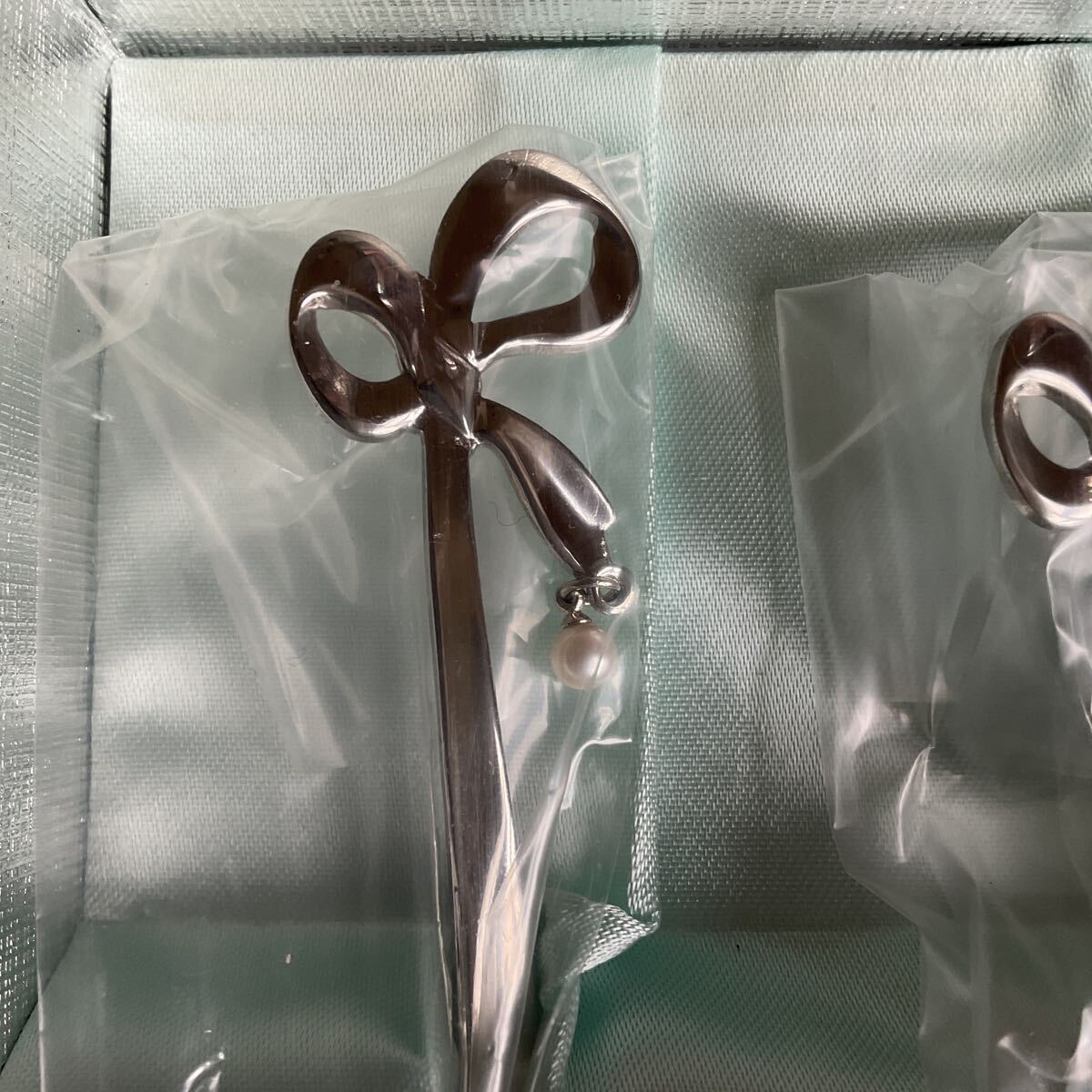 真珠が付いた上品なマドラーです。