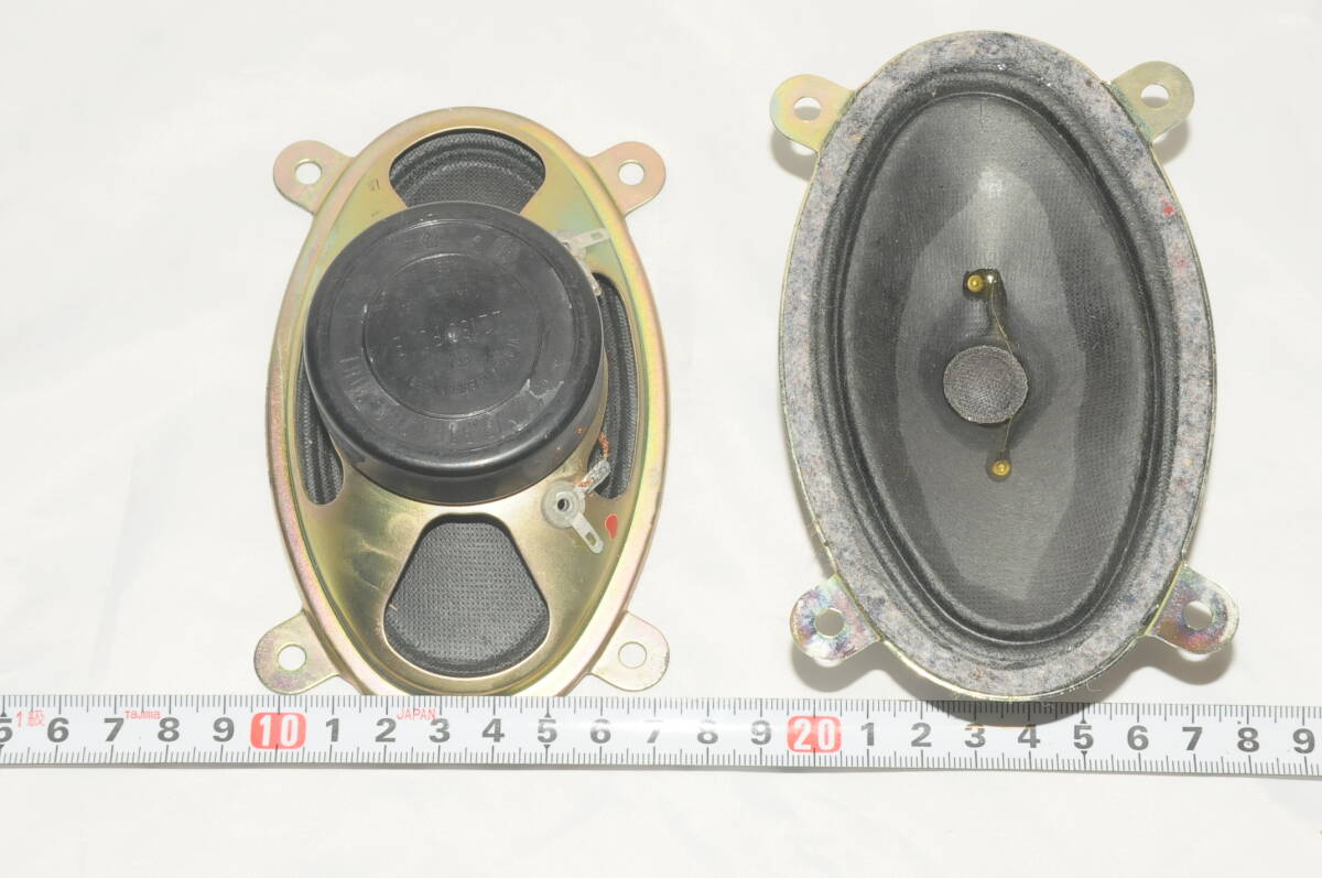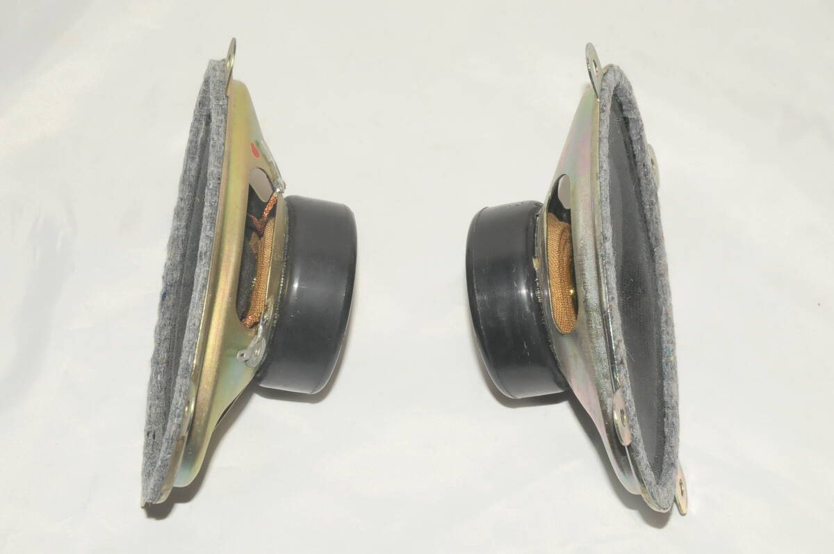 ご覧いただきましてありがとうございます。 旧東独RFT 2160シリーズ L2160PO/B 13cm×8cm 高能率 楕円ツイーターです。 マグネットカバーに A 13.5/3.5 TGL 200-7081 と表示があります。 15年程前にマニアの方から譲っていただき 段ボールに入れて大切に保管してきました。 大型マグネットと超軽量コーンにより太く芯のある高音を再生します。 中高音が太く力強くなり、かつ音の見通しが良くなり、目が覚めた様なクリアな音になります。 RFT・シーメンス・テレフンケン等のヨーロッパ系フルレンジユニットとの相性が良い様です。 このツィータはマグネットが特に強いためか、能率はかなり高く 大口径のフルレンジに追加しても音量が不足することはないと思います。 活躍の場がなく 断捨離を決断しましたが 素晴らしいユニットで 出品を迷う程の逸品です。 小音量のテストでは 素晴らしいサウンドが響いていました。 ユニット外形サイズ 130mm×80mm です。 DCR実測値は 7.2Ωです。 コーン紙に 経年のシミ汚れと 多少の波うちはありますが 動作に影響はありません。 フィックスドエッジ・ガスケットにもダメージはなく、きれいな方かと思います。 マグネットカバー・フレームにくすみ汚れなどが有りますが 全体的に良好な外観です。 現状にご理解いただき、引き続きご愛用いただける方のご入札をお待ちしています。 国内外 の古いオーディオ機器を収集してきました 特に スピーカーユニットは使い切れないほどの数量を集めました。 集め過ぎて活用が難しくなり 断捨離をする事にしました。 思い入れのある古い ユニット をご活用いただけましたら嬉しく思います。 | |||