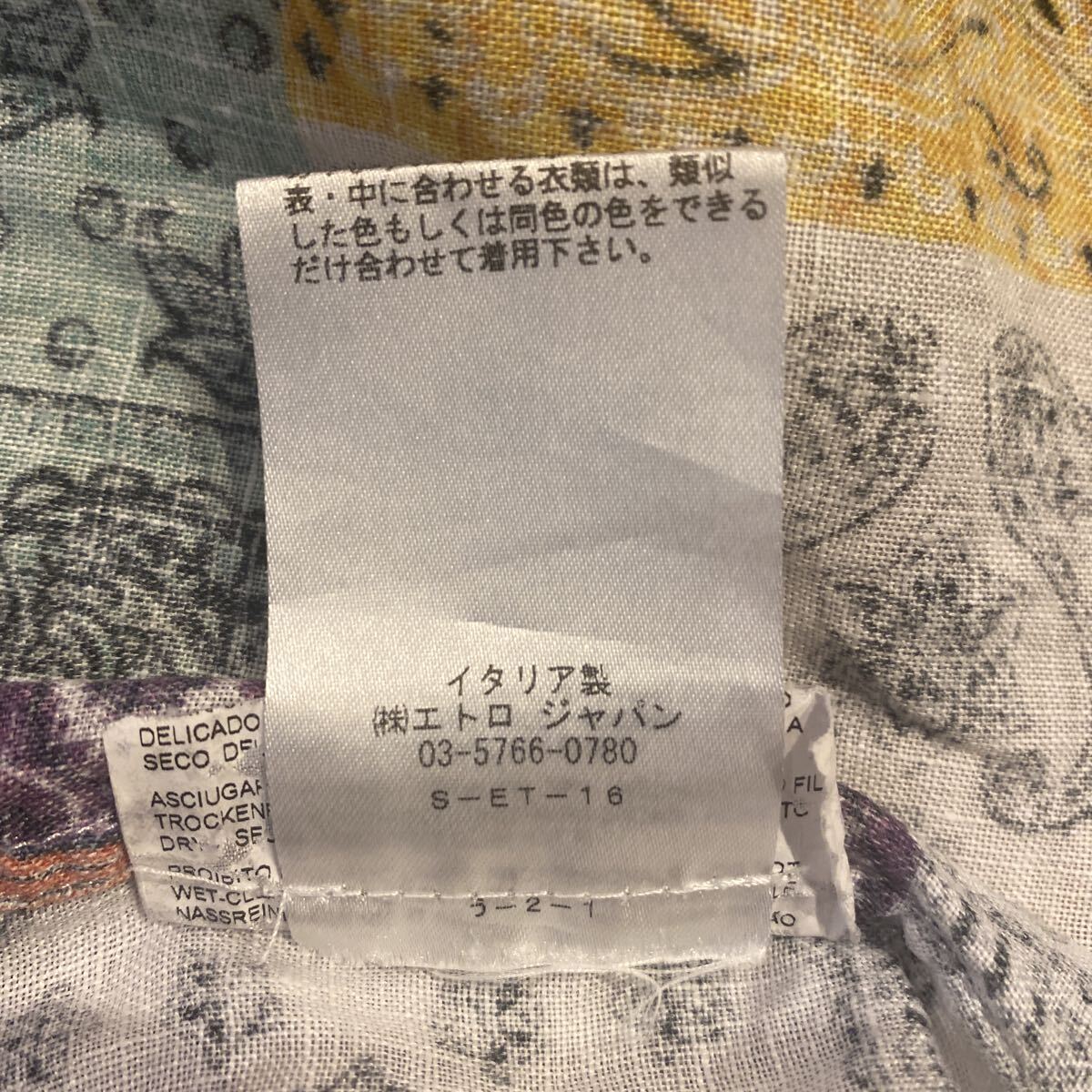 エトロ、ペイズリー柄の半袖シャツです。イタリア製です。目立った汚れや縫製不良ありません。物はいいですが古着ですので、使用感はあります。画像でご判断ください。サイズはLですが、173cm 78キロでもゆったり着られます。定価は5万円くらいだったかと。クリーニング済みでお送りします。