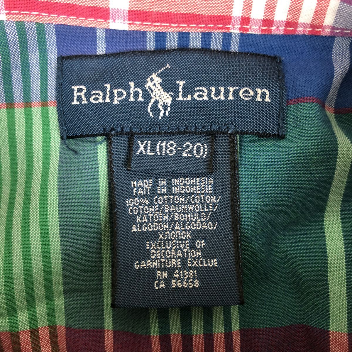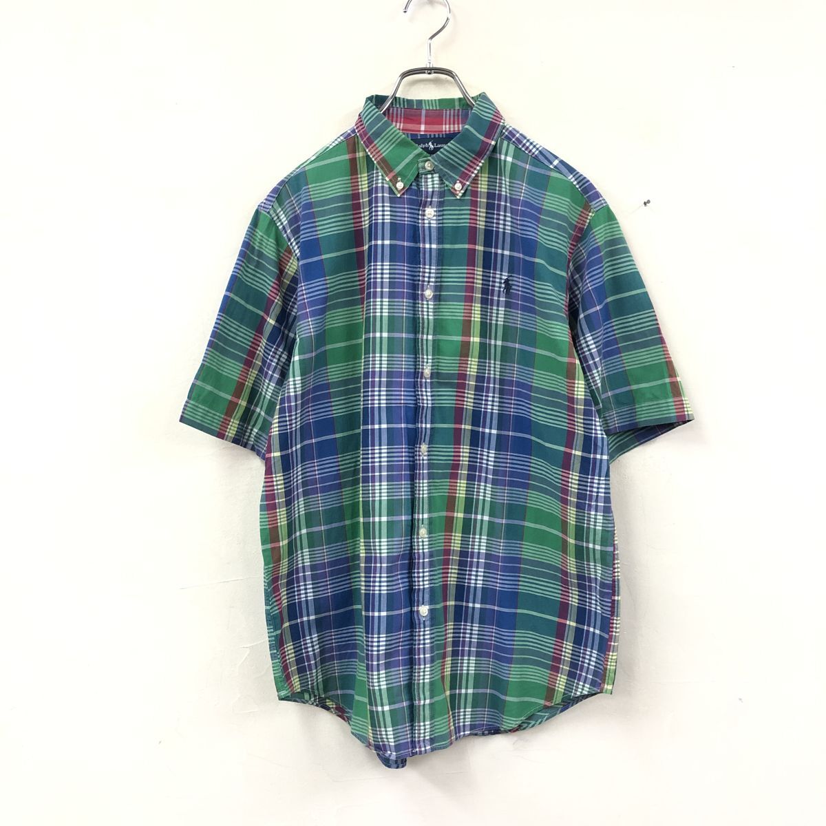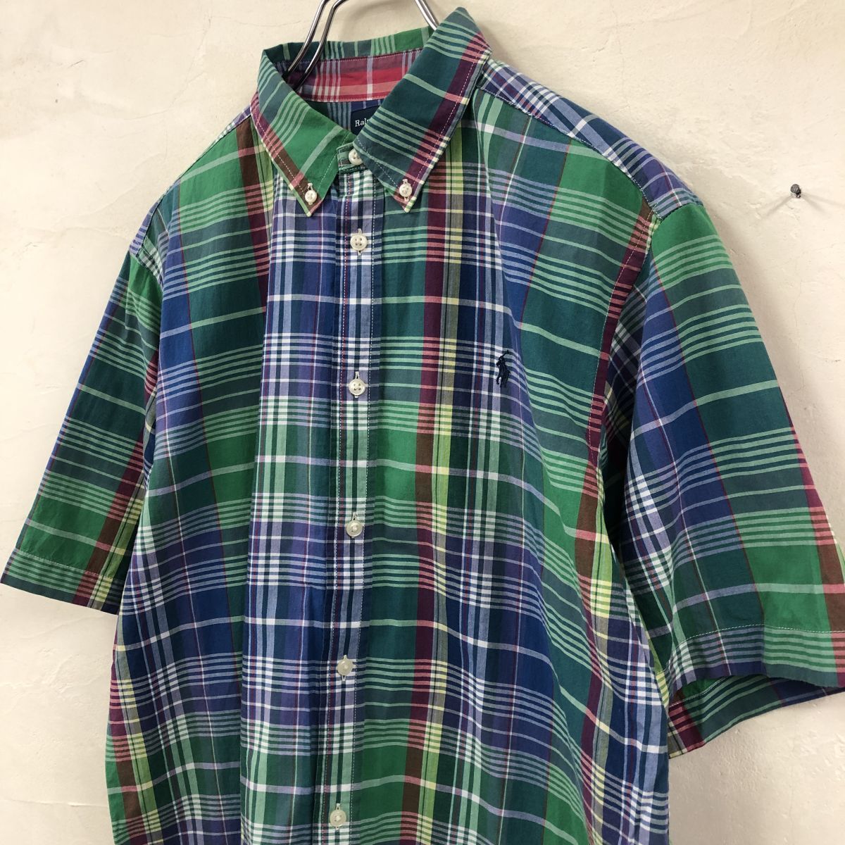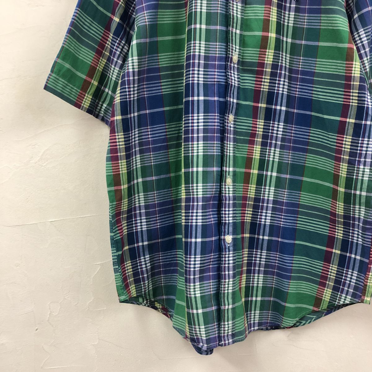 2H1474-Y◆Ralph Lauren ラルフローレン 半袖ボタンダウンシャツ チェック 刺繍ロゴ センタータック メンズ 紳士 ◆sizeXL マルチカラー 綿