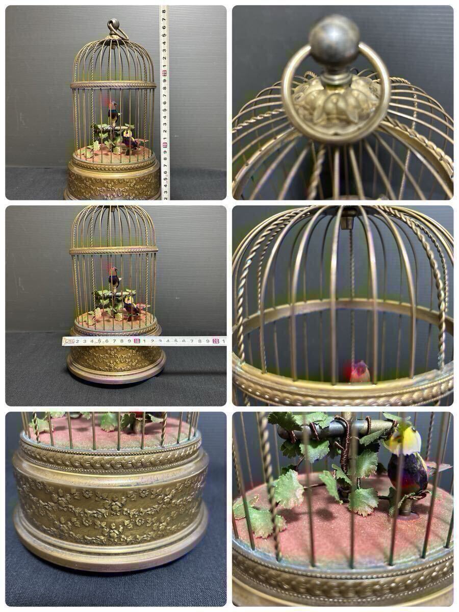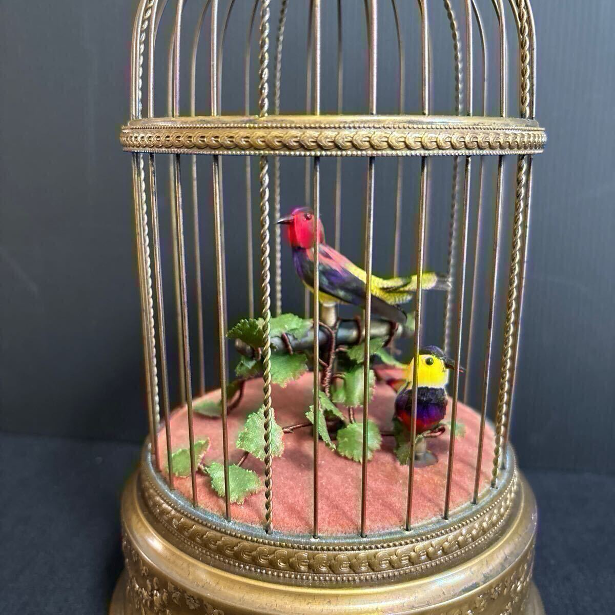 REUGE リュージュオルゴール シンギングバード こちらのお品は旧家のお宅からの物で古く大変貴重なお品です。赤黄色の可愛らしい小鳥のさえずる姿とその愛らしいくリアルな鳴き声は、見る人を魅了します。18世紀後期スイスで誕生したシンギングバードは今もリュージュ社で制作されています。さえずる宝石とも呼ばれるシンギングバードは、約200年ほど前にスイスの時計作りの巨匠、ジャケ・ドローによって考案され、今日までその技術が大切に伝えられている伝統工芸品です。小鳥の羽は全て実際の鳥の羽を使用しています。小鳥はとても可愛く美しい声で鳴きクチバシの細かな動きはリアルで細部にまで再現された動きは感動的です。古い物ですが小鳥の状態も良く、鳥の色味も赤と黄色の大変美しく鳴き声も鮮明で大変可愛らしく癒されます。動作確認も良好でスムーズです。(動画あり)こちらのお品お調べ致しました所、鳥の色味は多少違いますが(一つ一つ手作業で本物の鳥の羽を使っている為鳥の柄が違う為だと思いますが)似た物が高価販売記載されております。御参考までに是非検索お調べ下さいませ。又古いお品ですので大切に保管はされて状態は良いお品ですが、経年の汚れや土台部分の色ハゲなどは多少あるかと思いますので、画像での御確認をよくされた上でのお取引宜しくお願い致します。サイズ高さ30センチ横幅約16.5㌢ 重さ約1704g です。木箱付きケージタイプ2羽仕様 木箱はピッタリの物がありましたのでお付けします。元々付いていた物ではございません。大変可愛く素晴らしいお品です。尚ノーリターンでのお取引宜しくお願い致します。Reuge 15/724 の意味「15/724」は、ムーブメントの識別番号を示しており、具体的には以下のことを意味していると考えられます。15:ムーブメントの種類(この場合は2羽の鳥のためのシンギング・バード機構)。724:この機構が組み込まれた特定のモデル番号(ケージのデザインや外装が異なるモデル3. モデル特定: ムーブメント番号「15/724」は、この2羽の鳥が収められたケージタイプのシンギング・バード・オートマタであることを裏付けるものです。Reugeのコレクションの中でも、非常に価値のあるアイテムです。 こちらのリンク動画ありhttps://youtube.com/shorts/zE1mD33BkmI?si=jBalk7rA1ytPXEpZ 可愛らしい動きや鳴き声を動画で是非視聴して下さいますよう宜しくお願い致します。素晴らしいお品でかなりお求め安い価格設定にしております。よろしくお願い致します。