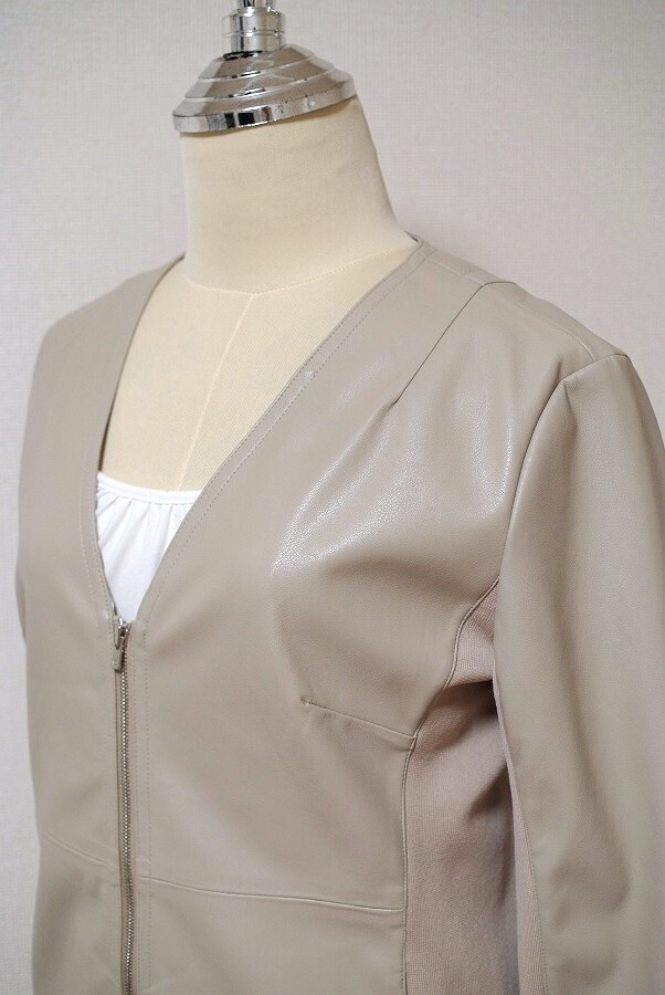 DOUBLE STANDARD CLOTHING「ダブルスタンダードクロージング」のフェイクレザージャケットです(*^_^*) 上品なツヤと柔らかな質感のフェイクレザーで仕立てたコンパクトなジャケットです♪♪ 切替えやダーツを入れることで、きれいなシルエットに仕上がっていてモードにもエレガントにも着こなせます♪ すっきりとしたV開きのノーカラーだから、合わせるインナー次第で印象を変えて楽しめます♪ お色は、ベージュ系の色合いです。 こちらのモニターでは、ほぼ実物どおりの色合いに写っていると思います。 商品番号:0505-120-211 A 「㈱フィルム」 ※インナーは写真撮影用サンプルになります。 |