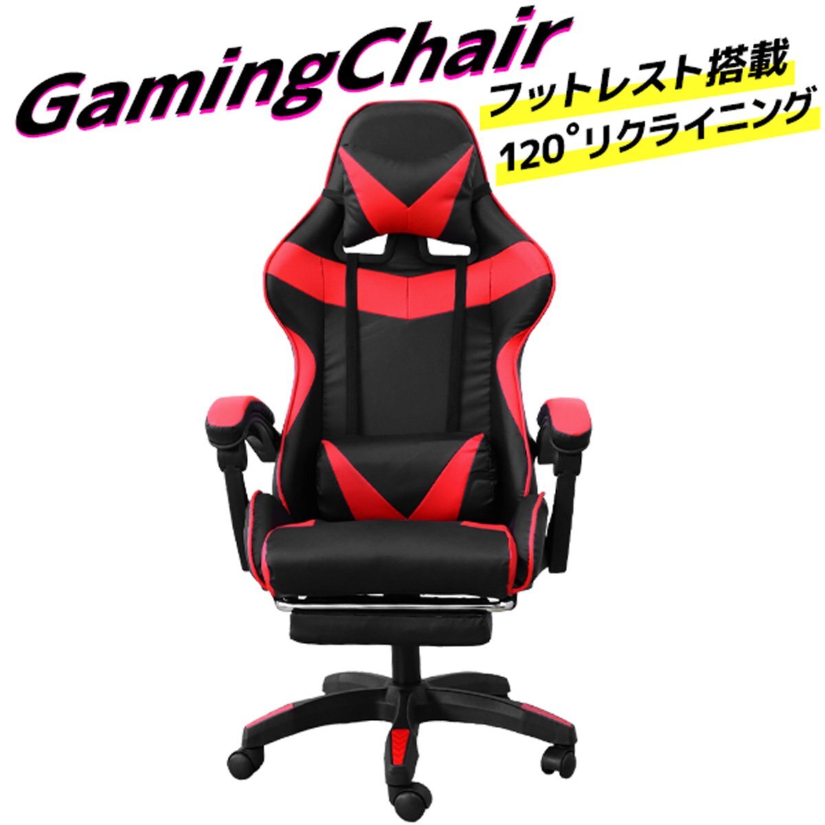 | ゲーミングチェア レッド 120度 リクライニング使用 フットレスト付き 合成レザー素材を使用したゲーミングチェア。 足先までゆったりくつろげる、フィット感抜群のゲーミングチェアです。 体をすっぽり包み込むバケットシートデザインで、綺麗な姿勢を保ちます。 頭部と腰部をサポートするクッション付きで、長時間座りっぱなしでも疲れにくいフィット感です。 背もたれは最大約120度まで、座面の高さは最大約13cmまで スムーズに調節できます。 |