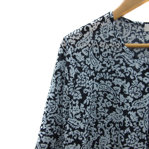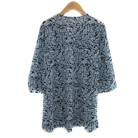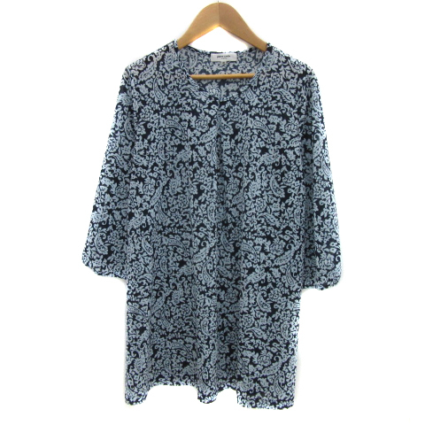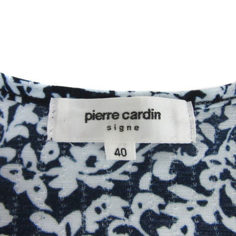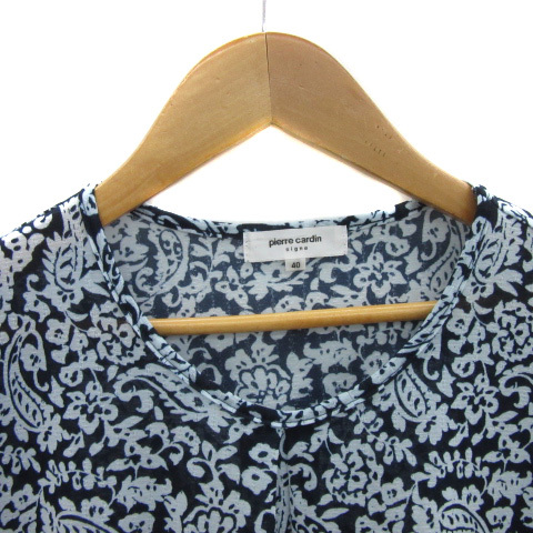 ピエールカルダン チュニック カットソー 長袖 ラウンドネック ペイズリー柄 40 L 紺 ネイビー 水色 ライトブルー レディース