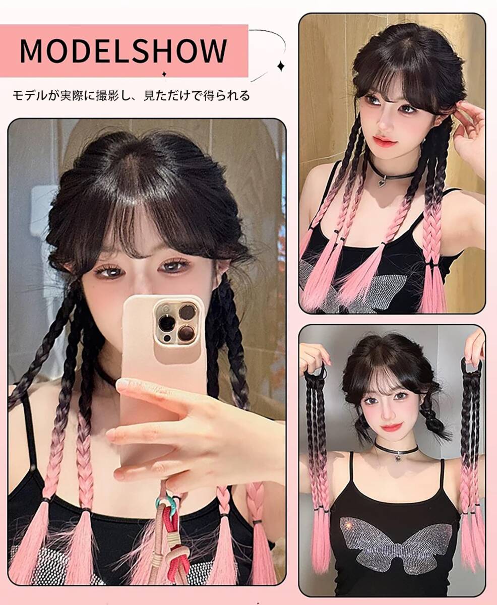 商品説明 | 長さ:約50cm。1個セット。三つ編みのカラーエクステ、とてもかわいい。 輪ゴム付きで、ヘアーに付け便利、簡単イメチェン!安定感も抜群、一日もしっかり付けている! ポニーテールやツインテールにそのまま付ける、使用方法はとっても簡単で、数秒でヘアアレンジ。 耐熱ファイバーをを採用されており、毛触りと質感ともに地毛のような自然さを体感でき、つけ毛は丈夫で、強い力で引っ張っててもしっかりして、断線しにくい。 女の子からレディースまでイベント、おでかけ、ハロウィン、パーティー、ダンスなどにご利用いただけます。ポニーテールに取り付けられた編み込みウィッグは、ショートヘアでもロングヘアでも、どんなスタイルにも合わせることができます。