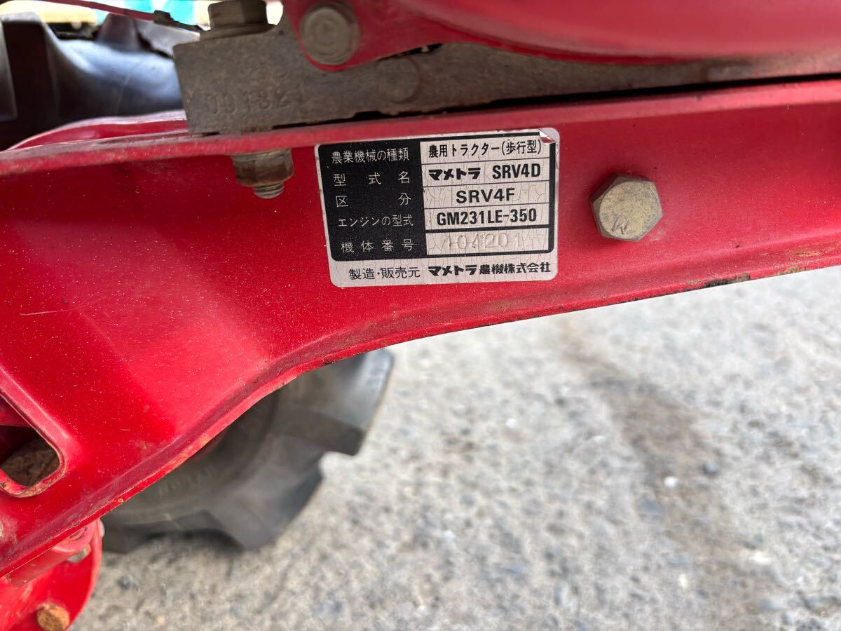 ※ コメント欄を最後までお読み頂いた上でご入札をお願いします ※ □■□ 詳 細 ・ 商品状態 □■□ メーカー : マメトラ名 :SRV4F燃料 :ガソリン 馬力 : 7。0Ps ☆機関系☆ ■短時間の簡単なテストを行ったところ、 エンジン始動し、走行、バクギア,ロータリーの回転の動作確認済です。 実演による動作確認は行っておりませんのでご了承下さい。 ★中古品の為、キズ・汚れ・サビ等があり、説明不足、見落としがある場合がございます。.USEDですので神経質な方はご入札をお控えください。 ※動作の確認はしておりますが、負荷作業やメンテナンスはおこなっておりません。使用に際しては要メンテナンスの認識でお願いします。 お引渡し後は原則、ノンクレーム・ノンリターンとなります。 動作・欠品・破損等の説明不足はあるかもしれませんのでご理解の上ご入札ください! 実演は行えておりません。あらかじめ状態は写真にて確認下さい。 現状渡しとなりますので、神経質・完璧を求められる方はご遠慮下さい。 中古品が気にならない方のご入札をお待ちしております!!!