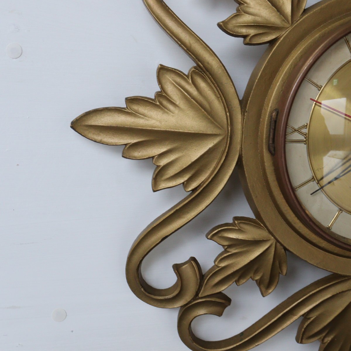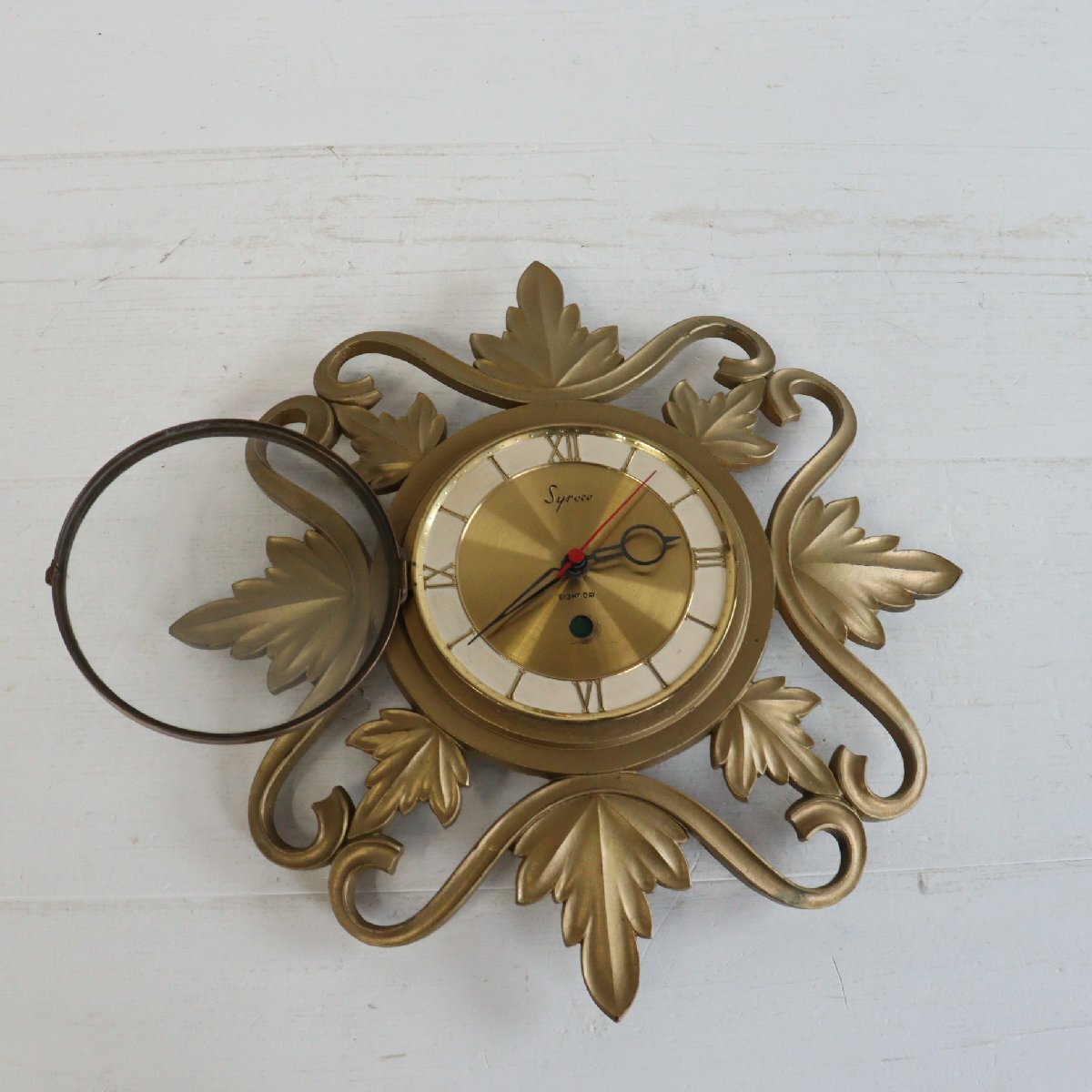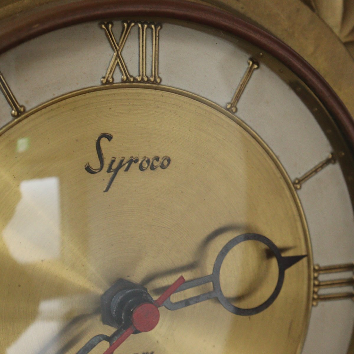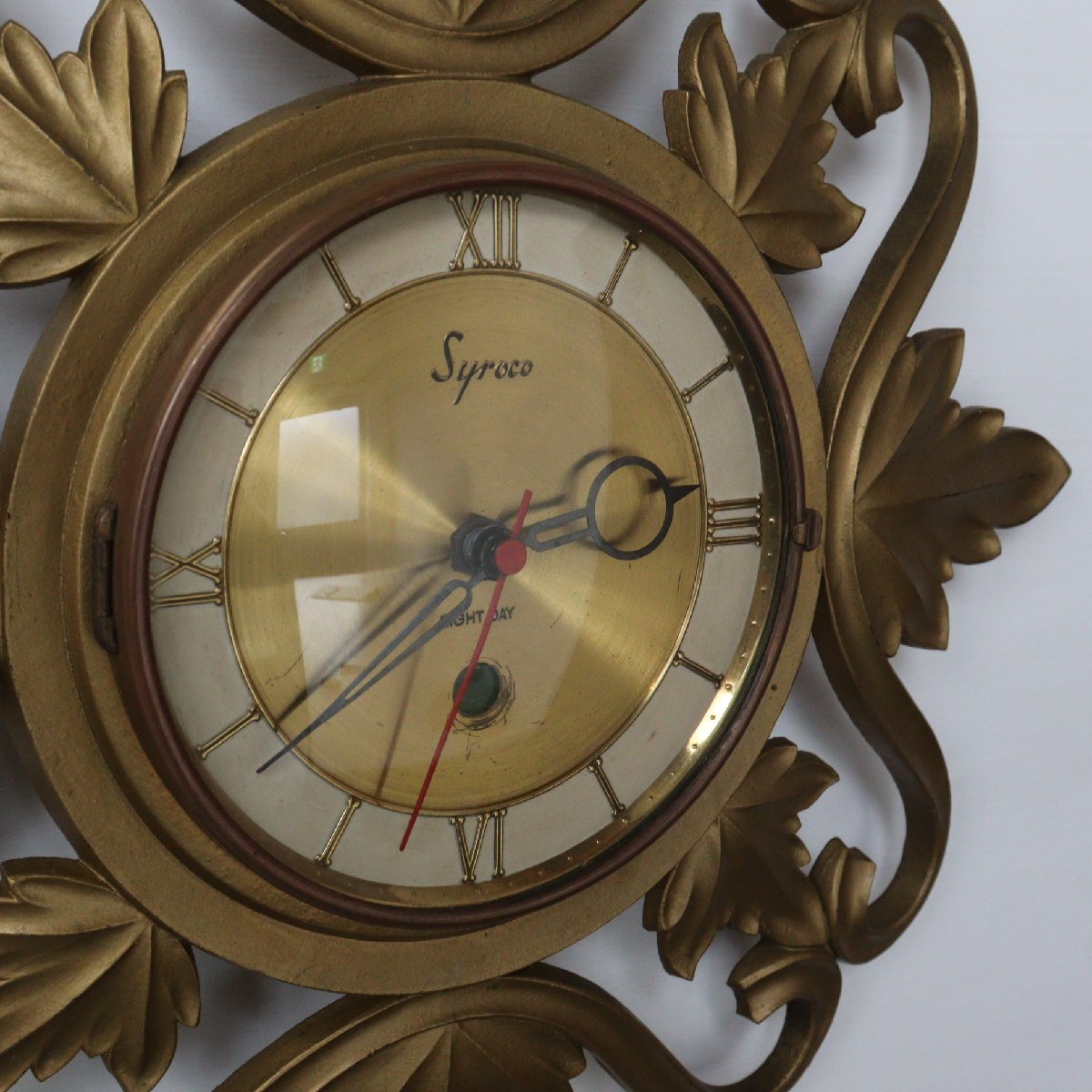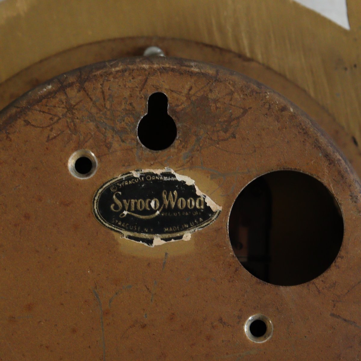 商品説明 explanation | 推定1960~70年代頃の「SYROCO」社のウォールクロックです。 材質は「SYROCO WOOD」呼ばれているSYROCO特有の木製のような樹脂です。 細かな装飾がウォールディスプレイとしてもインテリアに映えます。 表面はガラスで、針はオリジナルです。ムーブメントはカチカチ音がしないスイープタイプに交換しています。乾電池で動作し時間はほぼ正確です。 |